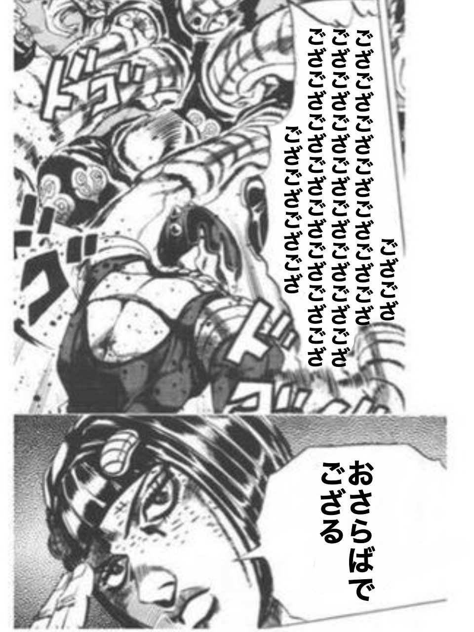 @Nanaya_Shiki_ おいおいおいおいブチャラティが「普通の言い回し」をする訳ないだろ!!だってあの「ブチャラティ」だぞ!覚悟ガンギマリやぞ!!「さらさらさらさらさらさらさらばでござる!!」これくらい余裕でおっしゃるに決まってる