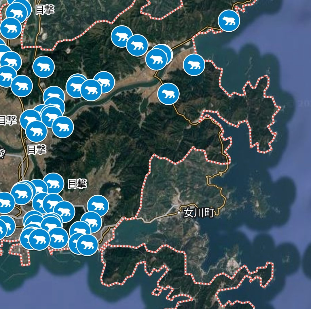 そもそも海側には来ませんし、おそらく目撃者も餌も少ない場所なんでしょう。