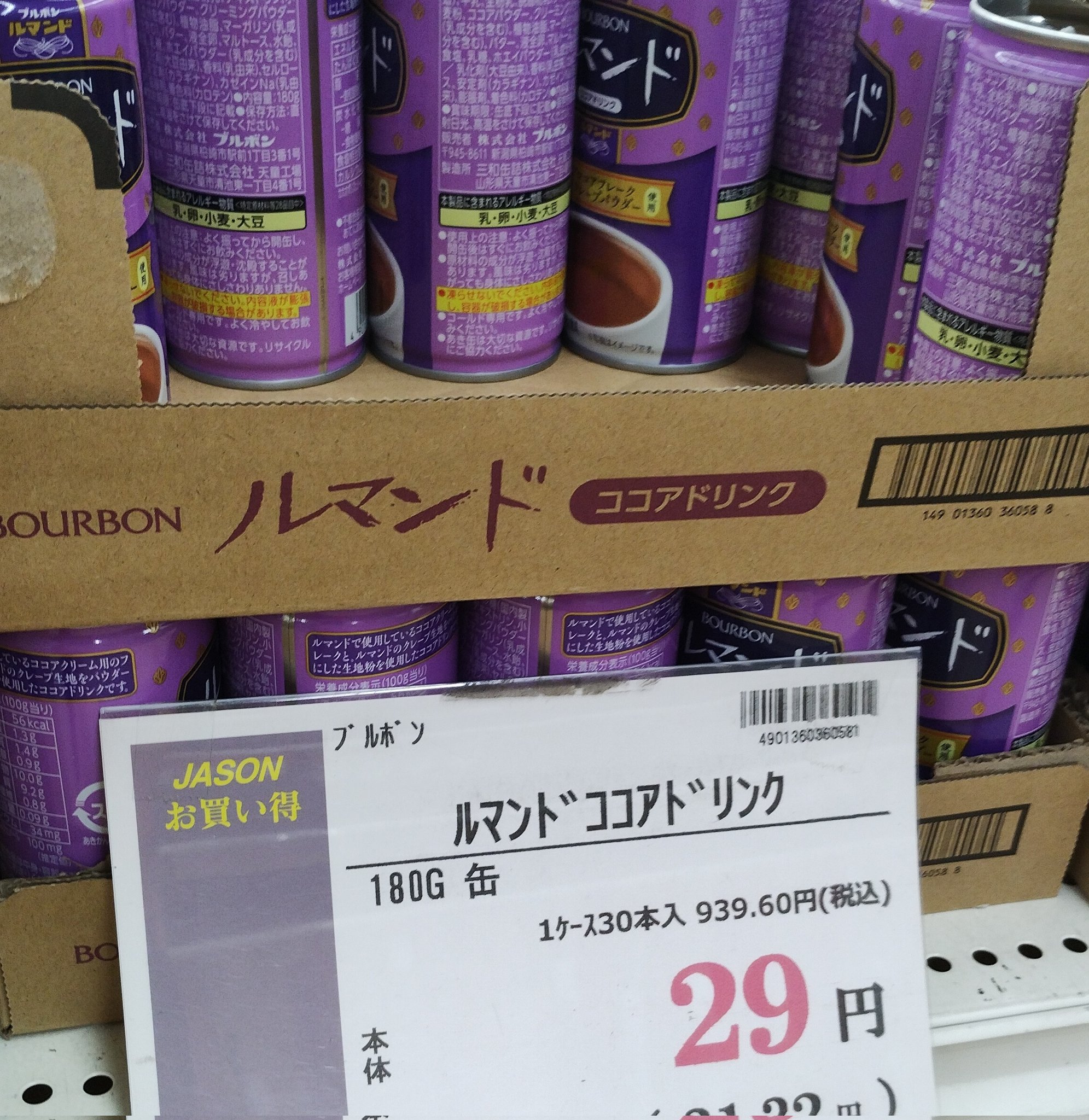 @Karu_gamo マニアックなドリンクを格安で買うならジェーソン。賞味期限が迫ると1本9円とかまで下がります。9円になったら箱買いw