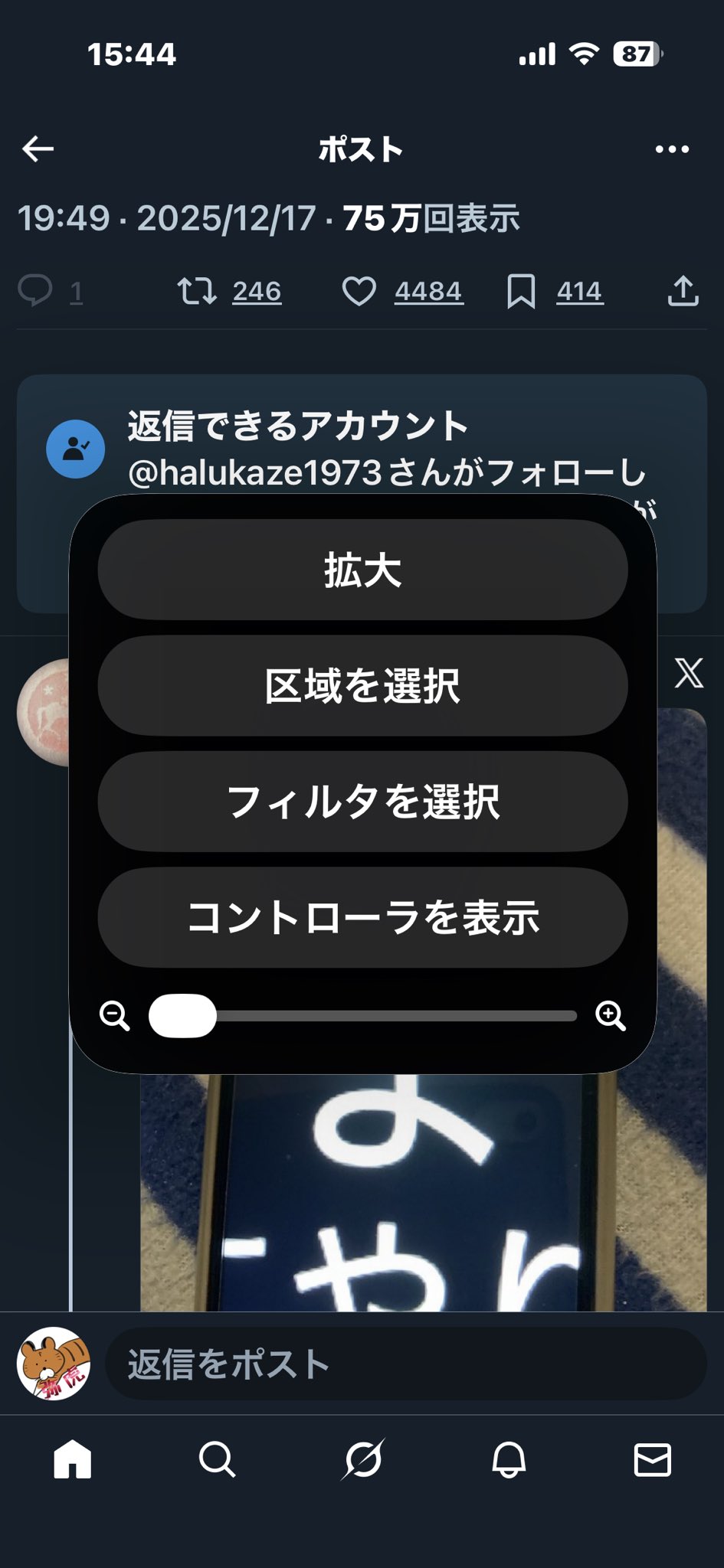 指3本で画面タップするとこれが出てくるからゲージのスライドを最小にすれば直るかと。 https://t.co/YWurItf4ex