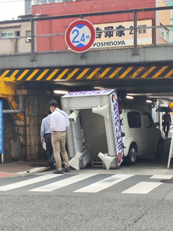 「どうして行けると思ったんだ…」秋葉原の高架下に生コンのミキサー車がぶっ刺さる😱