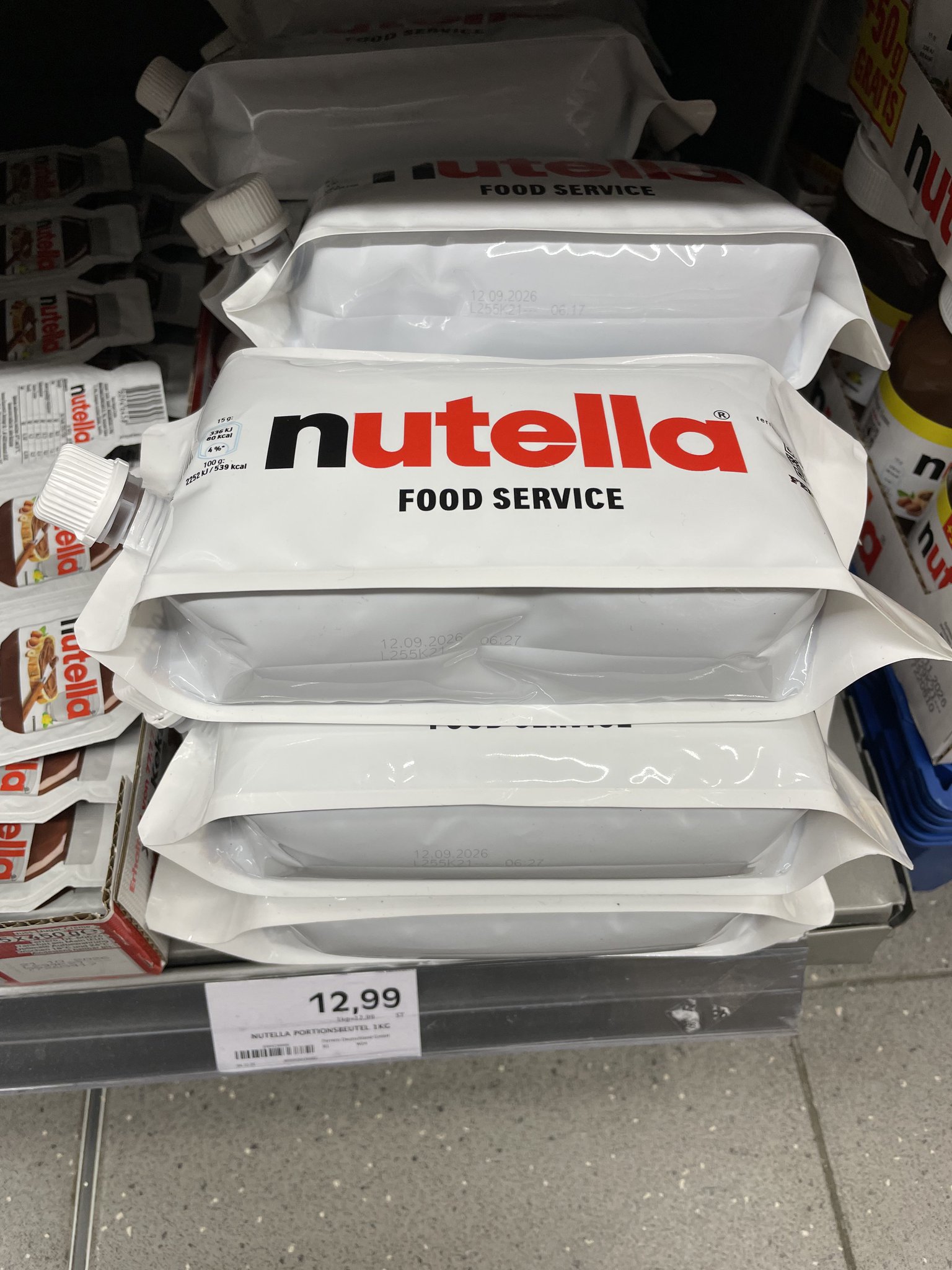袋入りの1kgヌテラ売ってた!!!!でか!!!! https://t.co/BMLOvzAygr