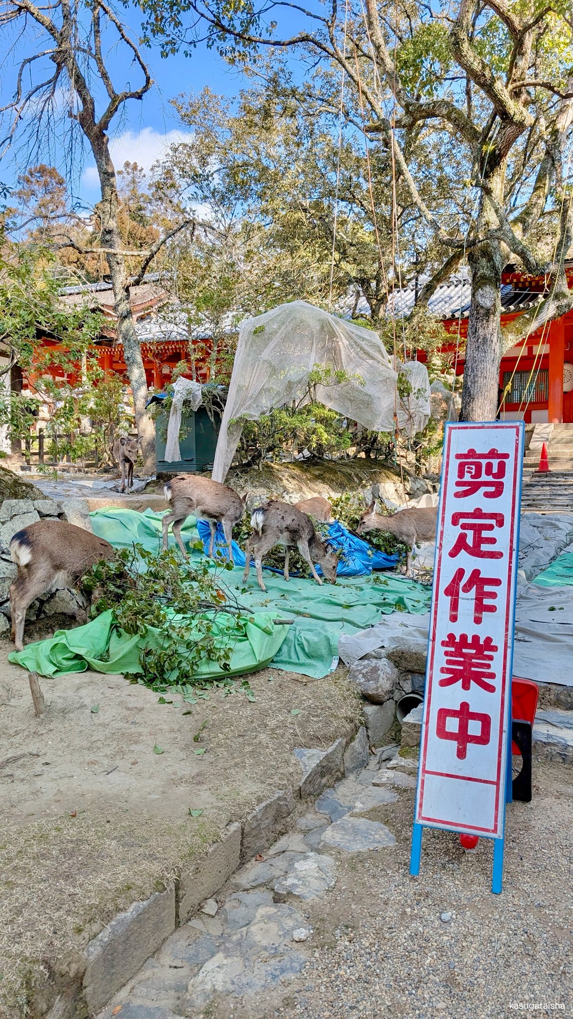 【納得】春日大社で木の剪定が行われると…そこはビュッフェ会場と化す🤣