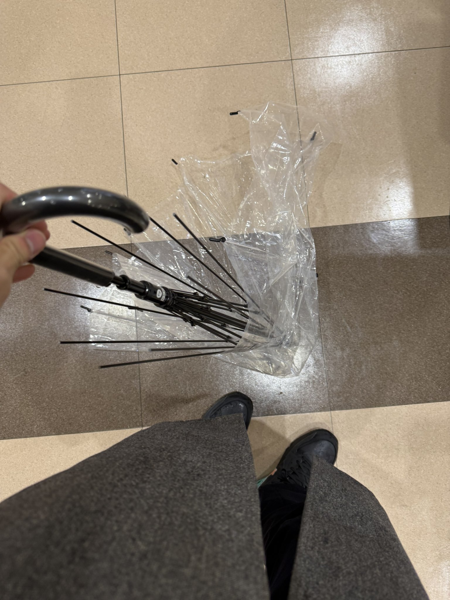 大学の傘の雨除去するやつ突っ込んだらありえないかさの傘の壊れ方して4ね https://t.co/I7ioJN6V9C