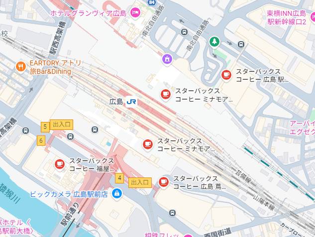 二子玉川ぐらいの密集率、つまりスタバが「ここは儲かる」と判断してドミナント戦略をとってるということ。すごいぜ広島駅。。。!