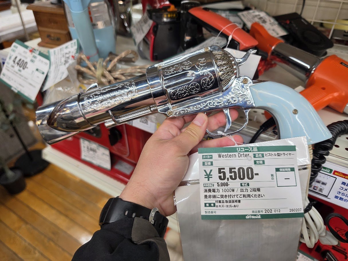 SAAみたいな見た目のドライヤーが売ってた。凄い口径だぜ。ハンマーを起こして出力を変更できるらしい。 https://t.co/8CVzi4b5nR
