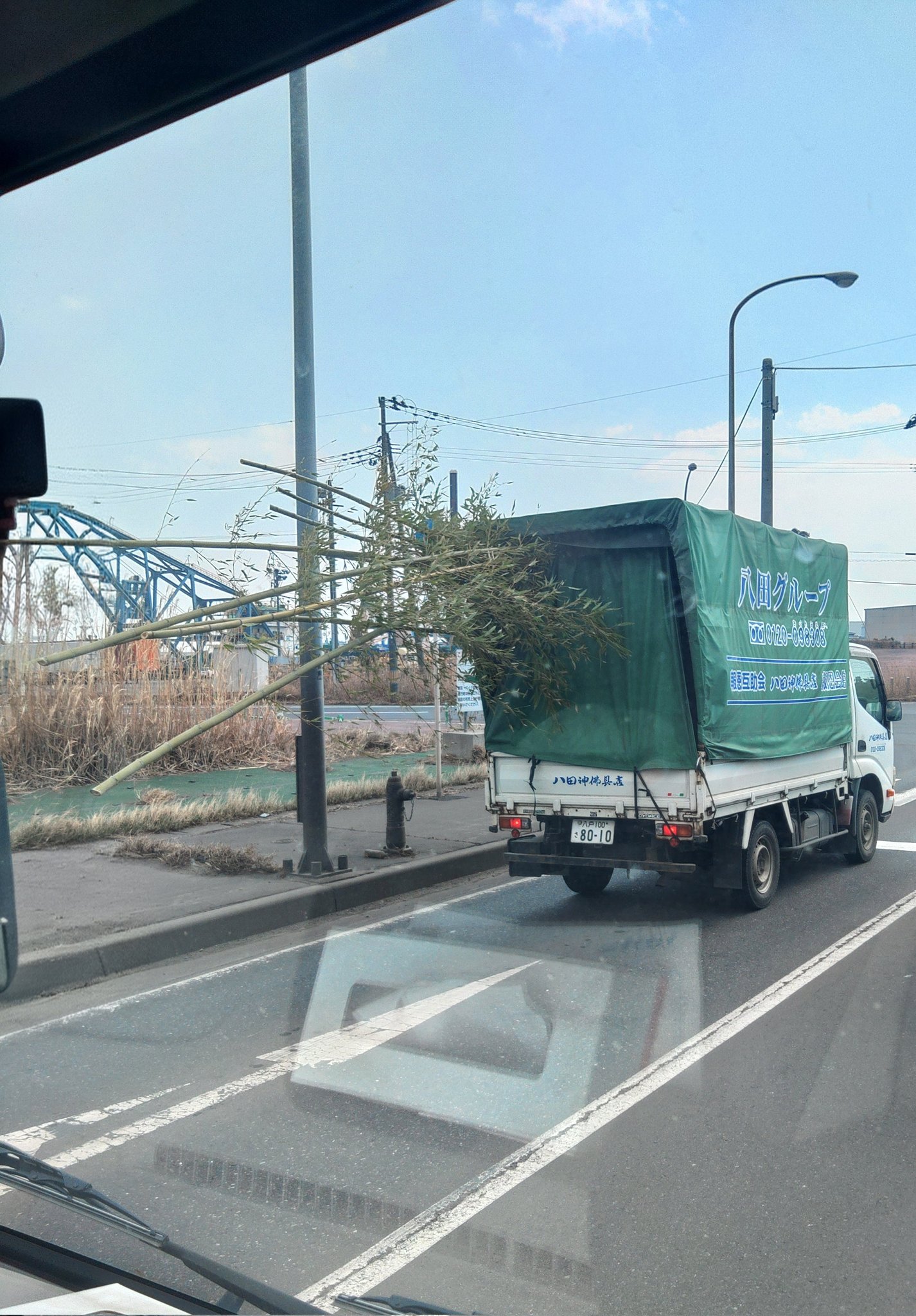 これ、後ろを走ってる時に竹が飛んできたら〇ぬやつじゃないですか…。竹の切り口鋭利だし。ナンバー出ちゃってるし会社名も出てるから、後々何かしらのお咎めはありそうですけどねぇ。