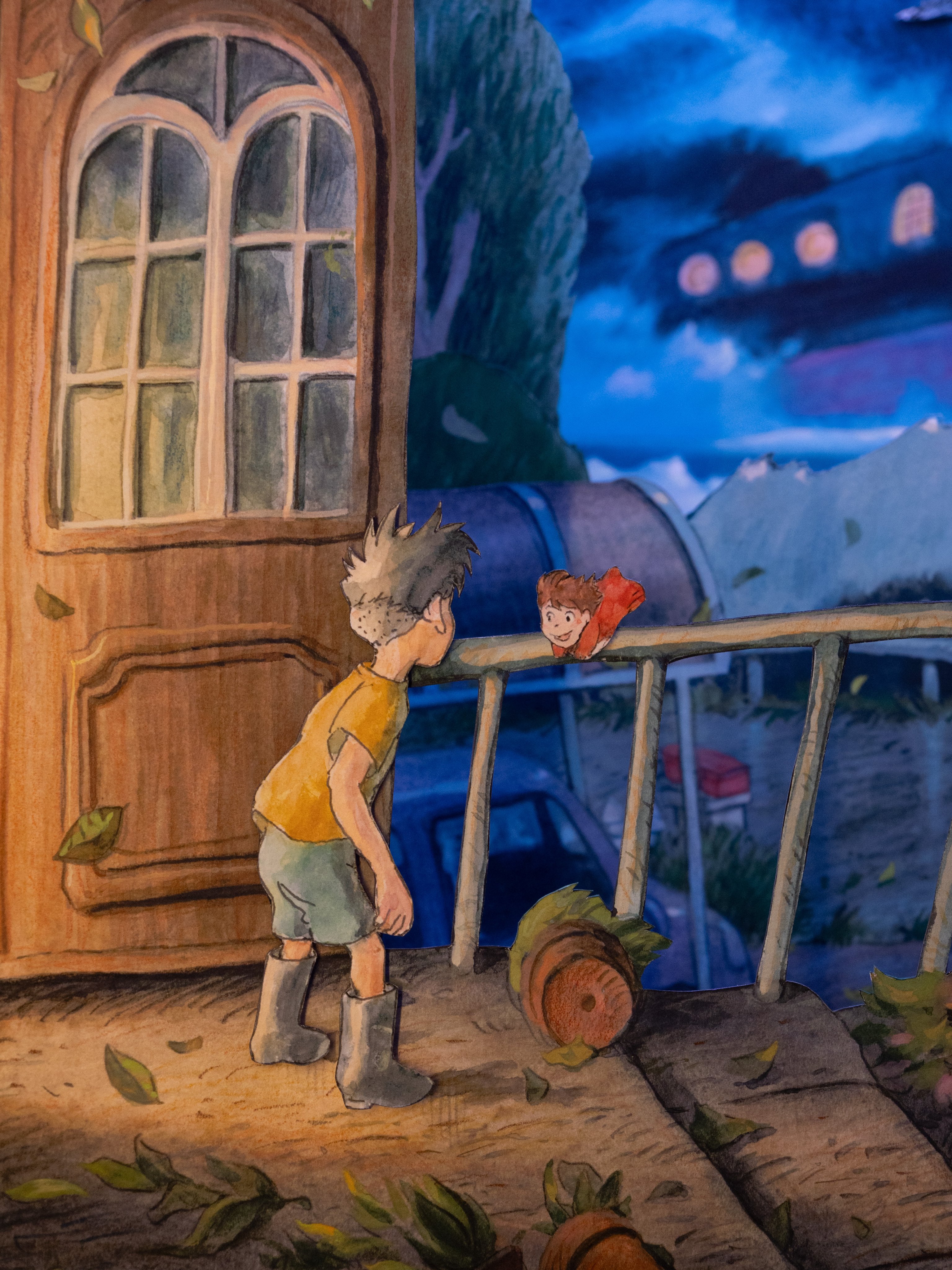 宮崎駿監督、85歳ですが、絵に衰えはみられません。ご覧ください、この精緻な描き込みを!宮崎監督の新作です。新作といっても、映画ではありません。「パノラマボックス」と名付けられた、箱の中で展開される立体的な仕掛け絵です。紙に水彩絵具で描いて、それを切って、貼ったり、吊るしたり。 https://t.co/27qPmZH2Ba