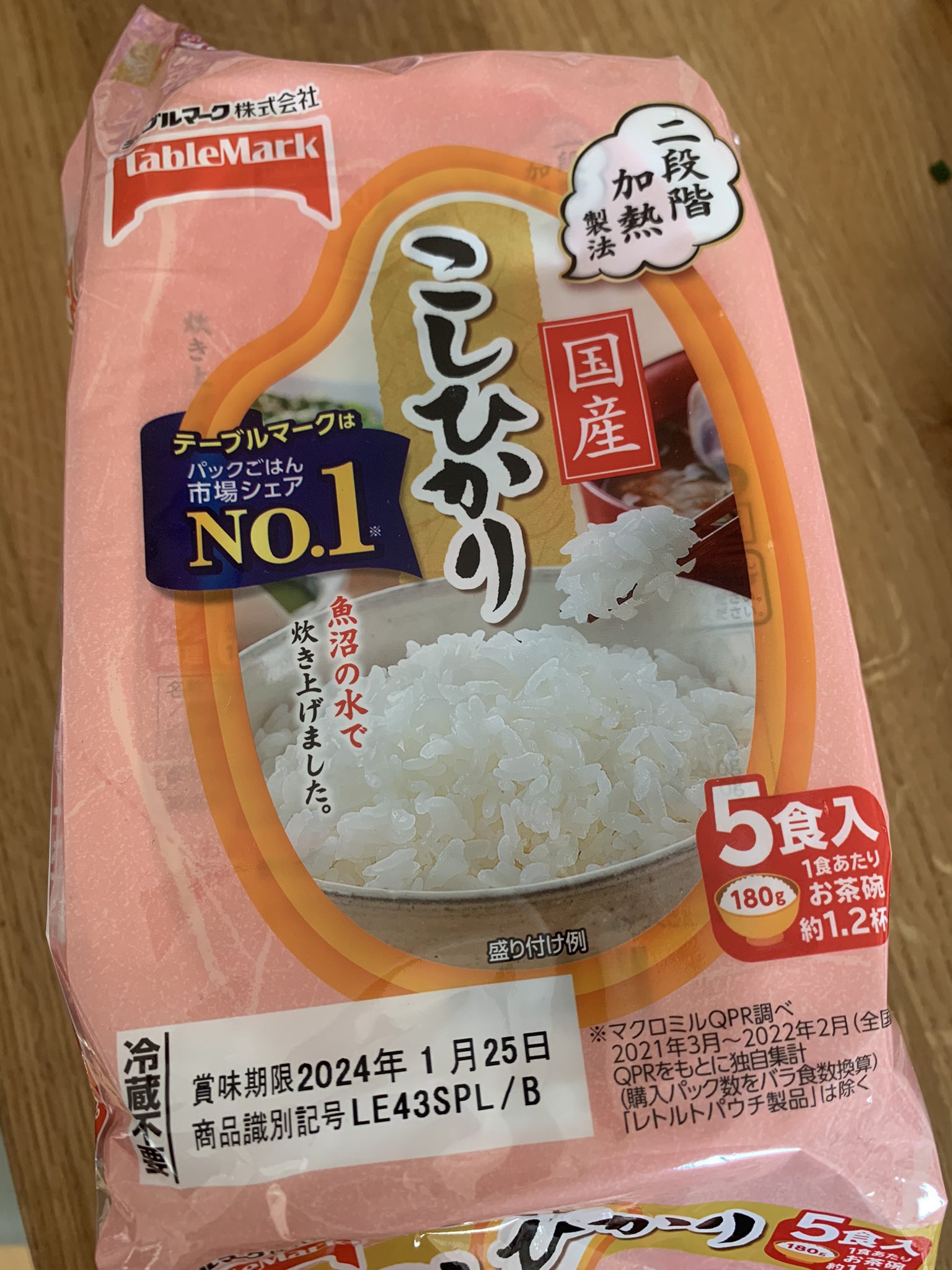 一方こちらは、最近になって「魚沼の水で炊き上げました。」から「新潟のおいしい水で炊き上げました。」に変わった、テーブルマークのごはん。お米は国産こしひかり https://t.co/Vs6H7vJ8WU