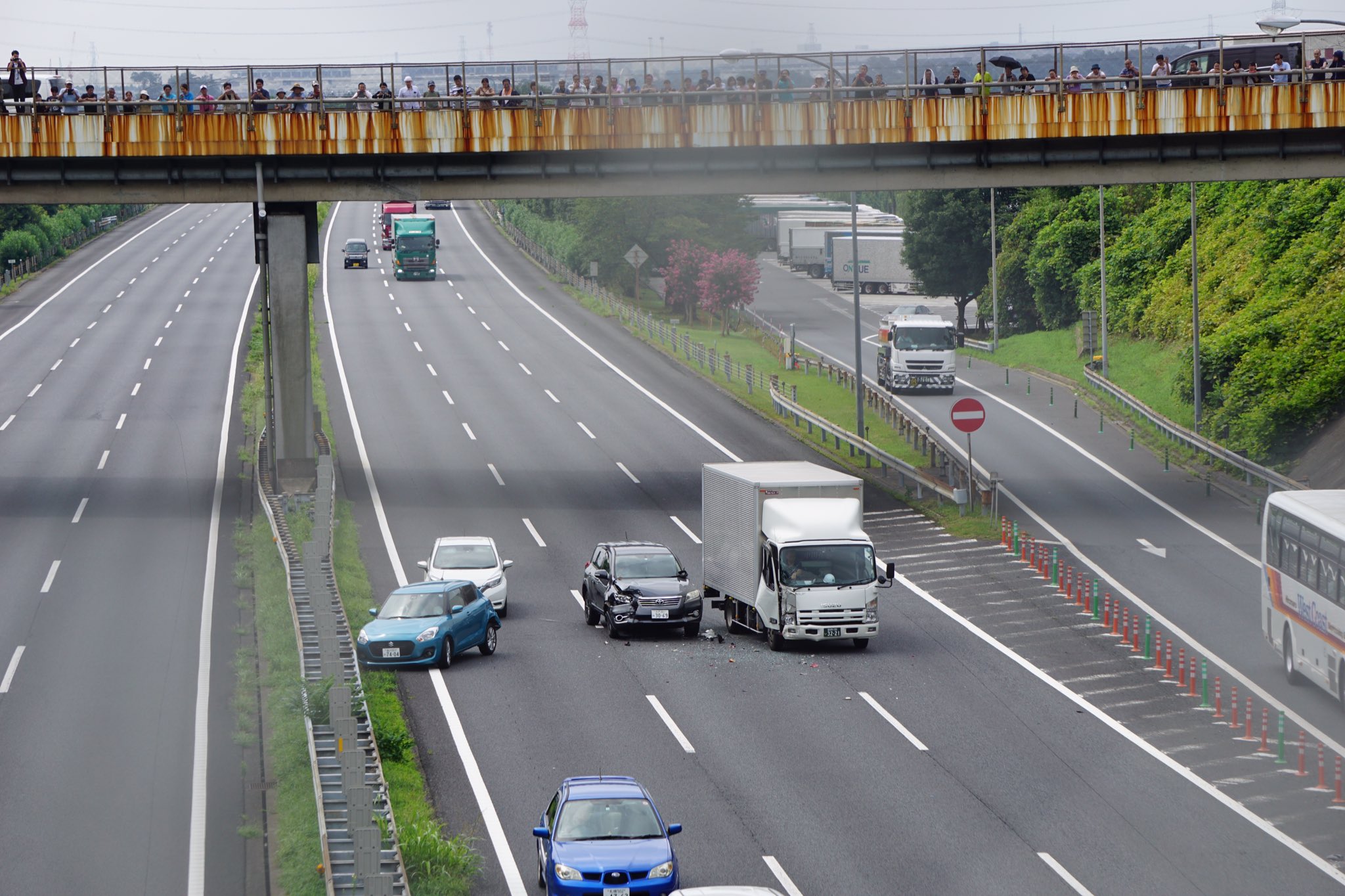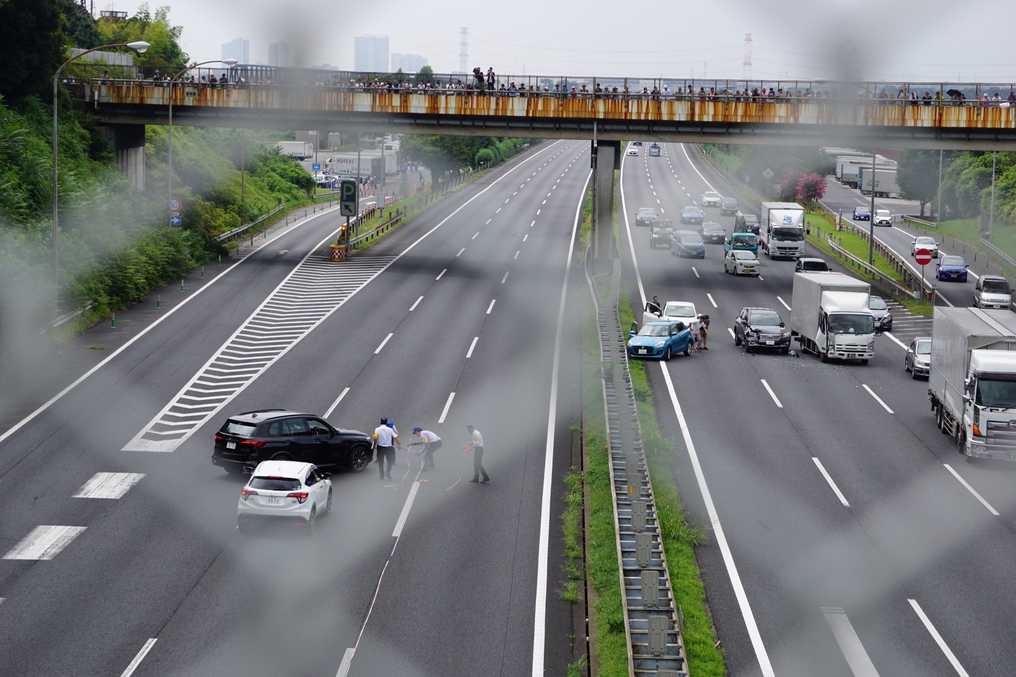 【衝撃】煽り運転事故の実況見分を陸橋から撮影していたら大変な事が起こった…