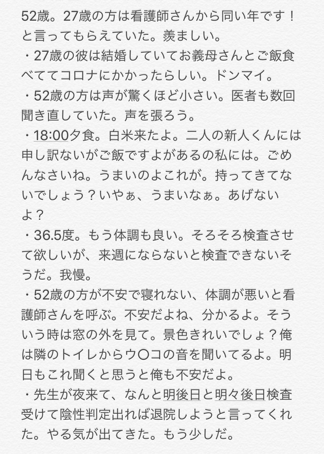 今まで書きためた入院日記です。※一部キツイ表現がありますが、あくまで感じたことをそのまま書いてますのでご容赦ください。根底には病院スタッフへの感謝はずっとあります。当たり前に好きなものを食べられるって、ほんと幸せなことよ。。【入院1日目】 https://t.co/WszrrDiZ0g
