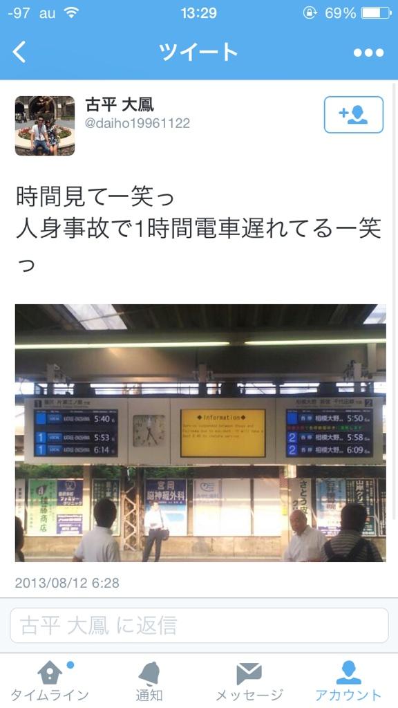 人身事故という言葉に麻痺しているのは誰もが同じこと。カルマなんて信じてないけど、つぶやくときは気をつけたいところです。ご冥福をお祈りします。