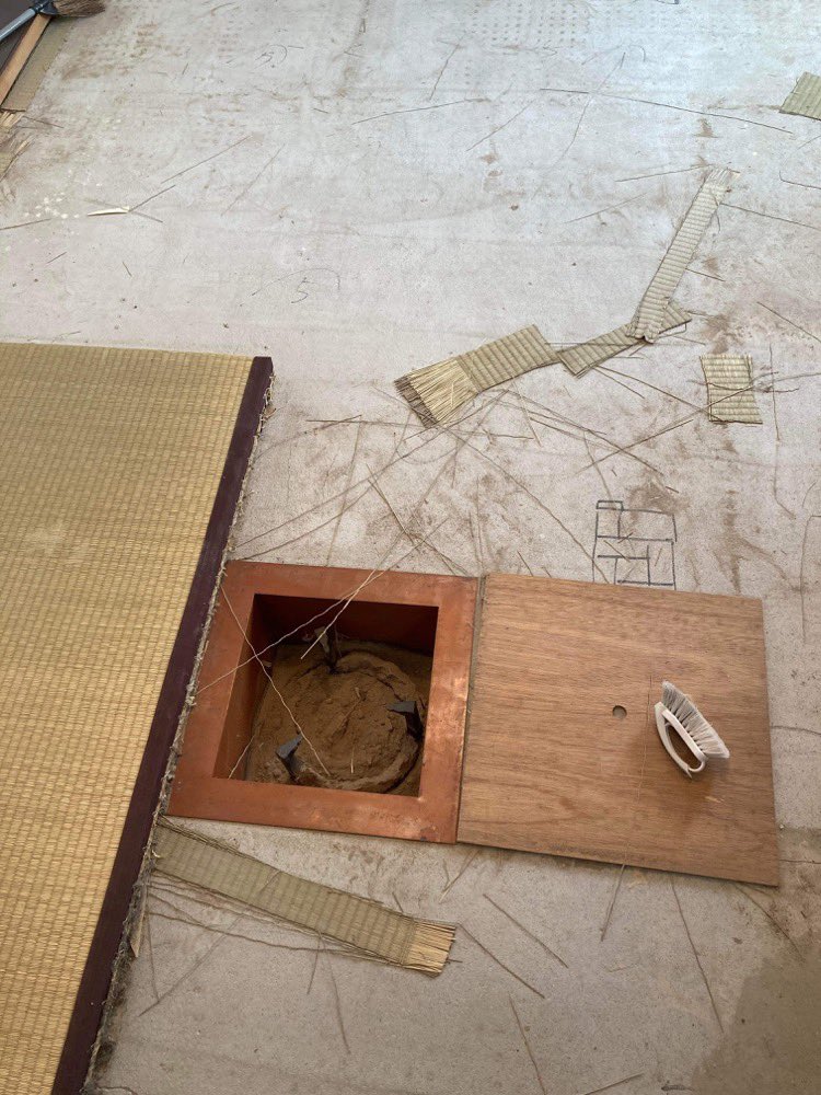 借りているマンションの和室で畳を剥がしたら、炉壇らしきものが出てきました。灰もそのまま残っていますが、そもそも普通の集合住宅ではあり得る話でしょうか?😳 https://t.co/hfTjyrHSTx