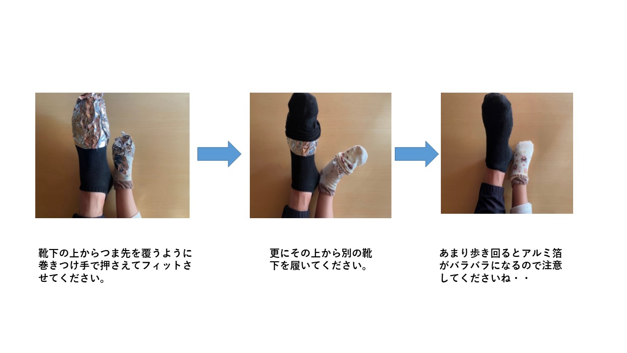 冬場に足先が冷えて困った経験をした方も多いのではないでしょうか。そんな時は靴下の上から足にアルミ箔を巻いて、更にその上に別の靴下を重ね履きしてみてください。輻射(ふくしゃ)熱でホカホカになり冷えを緩和することができます。災害時など、もしものときのために。参考にしてください。 https://t.co/TWXCricbZ7