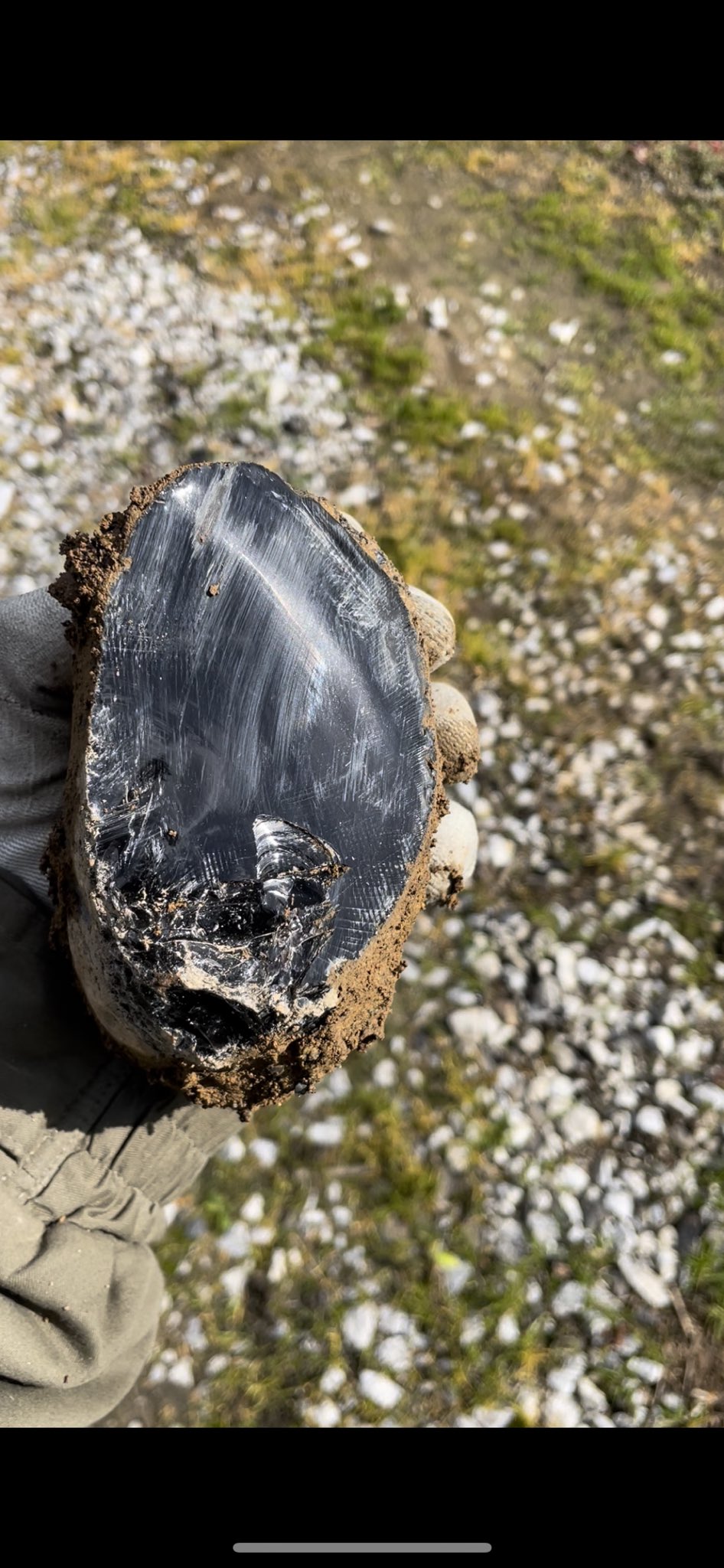 @_ukai_ こんなでっかい黒曜石、小学生時代にあったらすごい宝物になってたなグラウンドの砂に混じってるちっさい黒曜石よく探してた〜