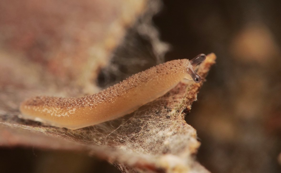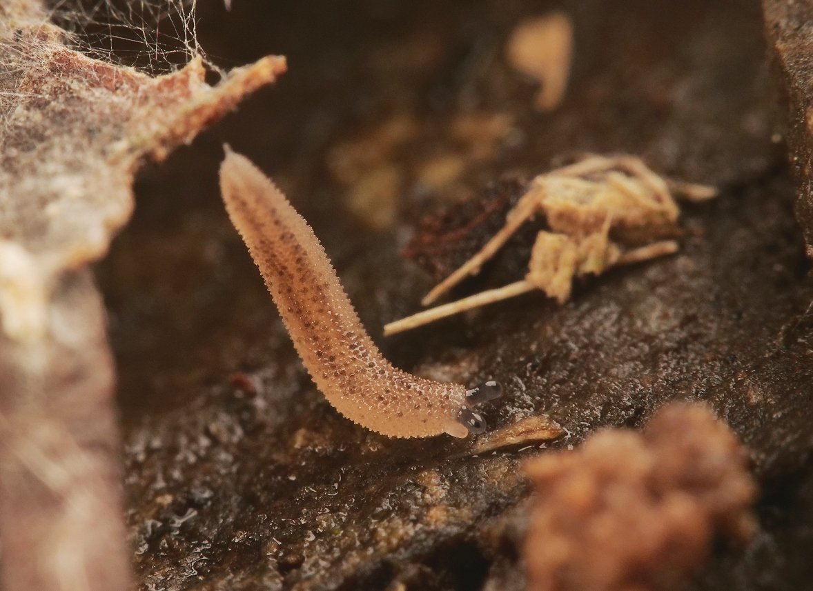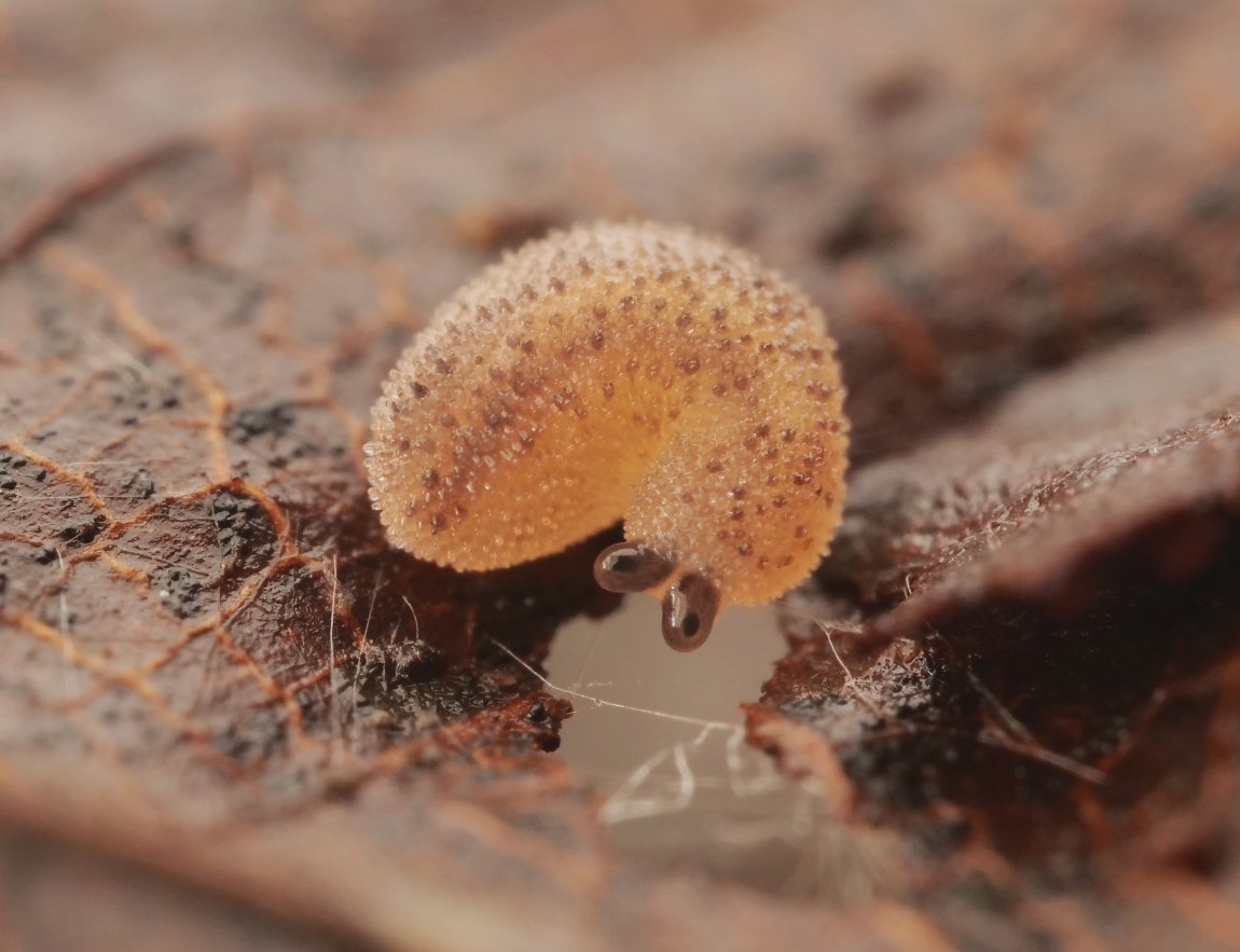 土壌動物観察にて、落ち葉にモチっとしたものが付いてるなと撮影していたらにゅっと目玉が出てきて驚いた。初めて見るけど、おぼろげながら「イボイボナメクジ」という種名が脳内に思い浮かんだので調べてみたらどうやらそれっぽい。 https://t.co/dDQswyltpU