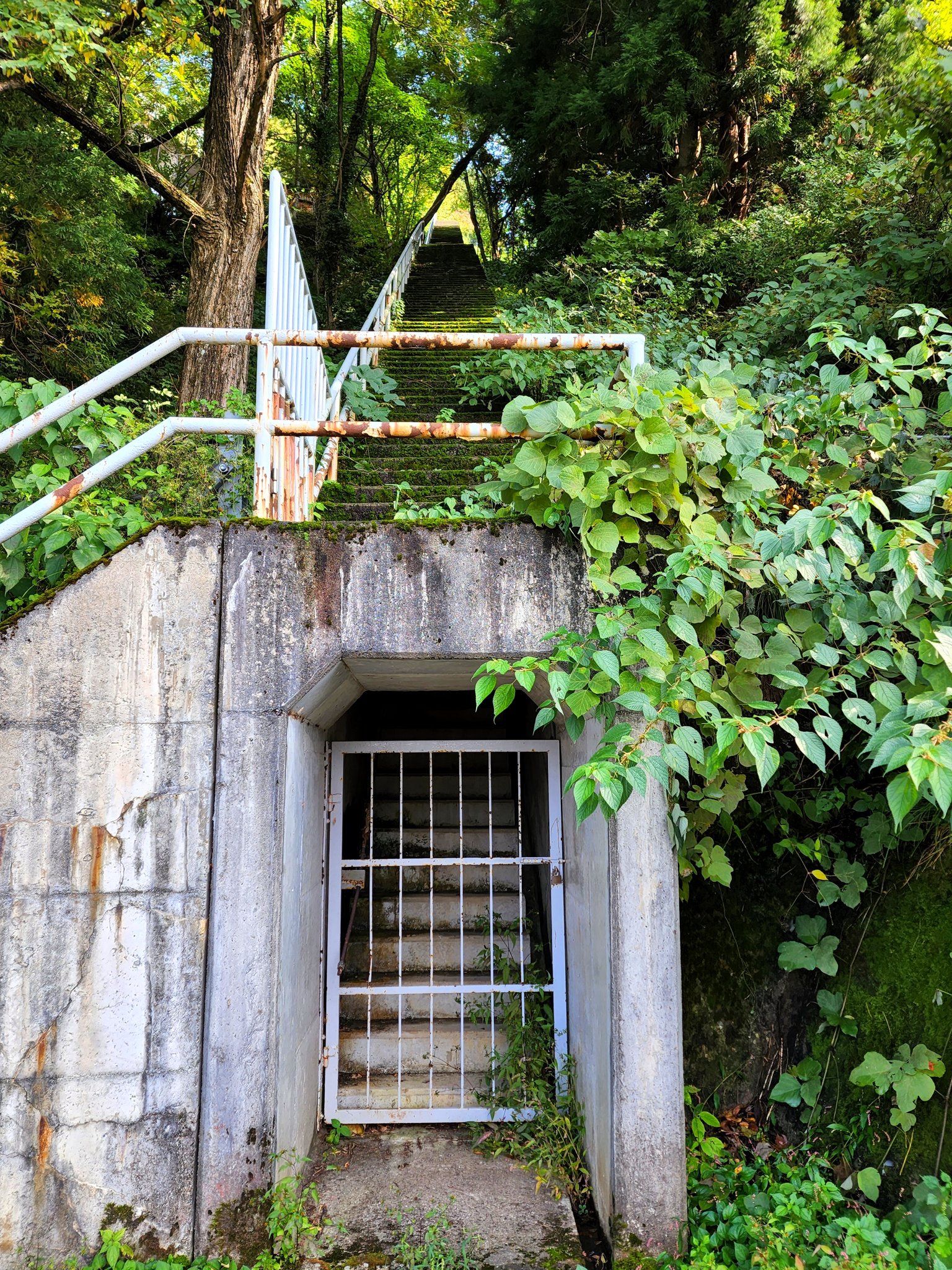 @pokopokopoko69 @budoucha 恐らくですがこの手の構造物は斜面等用の配管スペース(トンネルの中を電線やガス、水道が通る)で上の階段はせっかく構造物作るなら上を通路にしようという形の代物かと思われます。本来はトンネルは地表ではなく建物や他の配管に繋がるものですが何らかの要因で露出してるものかと