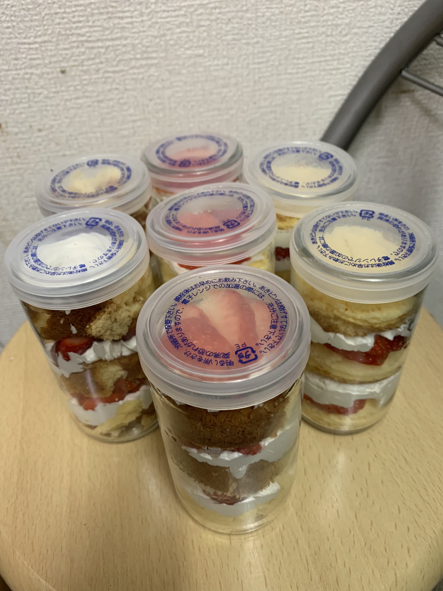 途中経過写真撮るの忘れましたが、このワンカップの瓶を抜き型に使い、スポンジをスポスポ抜いていきます。あとは瓶に層になるように材料を詰めるだけ。お好みで他の果物や、カスタードなんかもいいですね。クリームをケチらず使えばもっとみちっと詰まった感じになります。 https://t.co/OxFb6Dq6MH