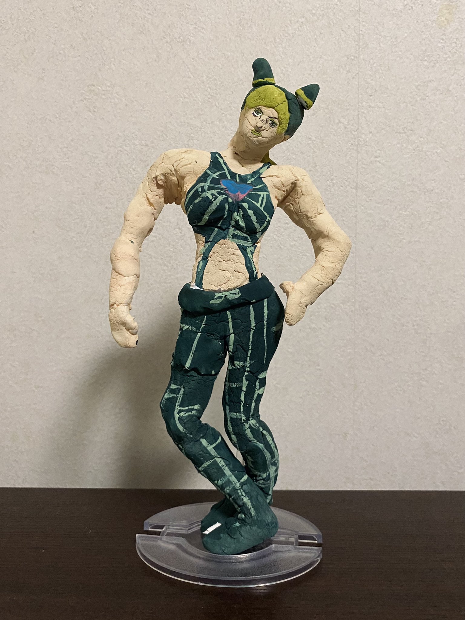 【悲報】ジョジョファンの学生が粘土で作ったという「空条徐倫」フィギュアがマッチョすぎるw