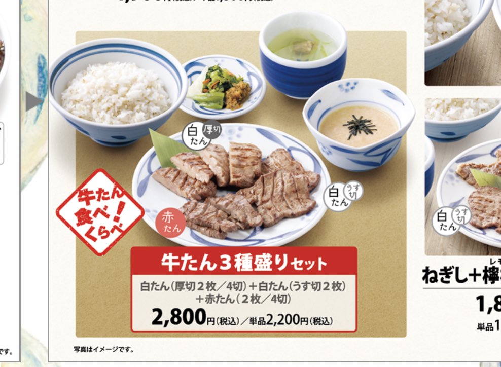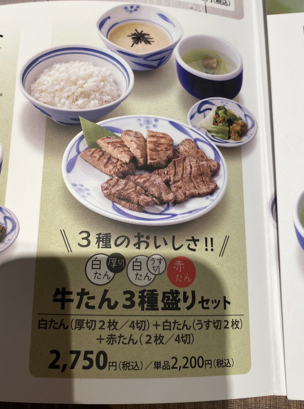 牛たん3種盛り、コロナの3年間で1950円から3400円になった(74%値上げ)