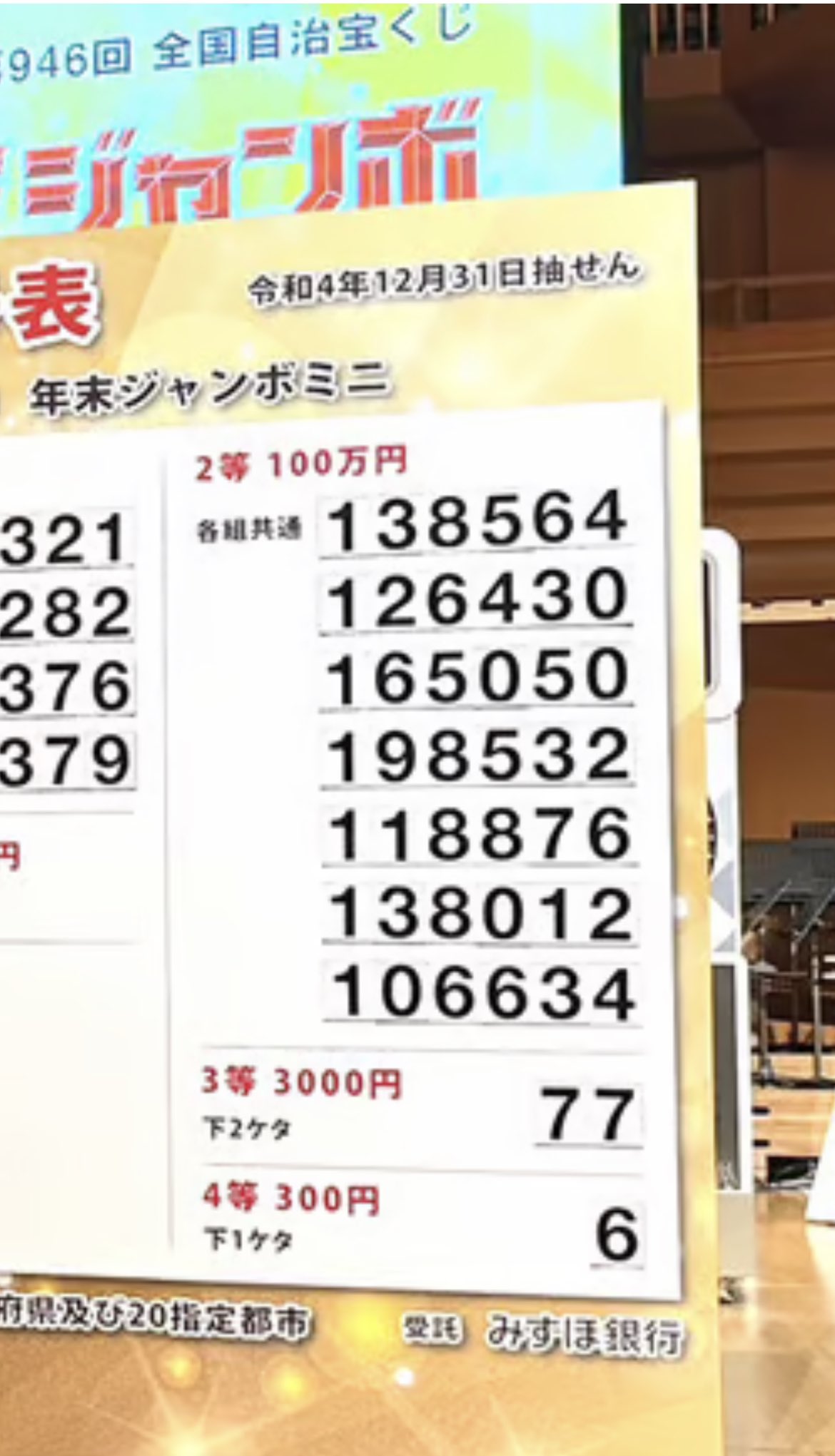 ぎゃー!!当選番号年末ジャンボミニの方かよ!僕の持ってるのは年末ジャンボの方の宝くじでした💦家族でぬか喜びしちゃった。うわぁーん😭皆様お騒がせしました😢でも初めてドキドキした💓 https://t.co/wZqMSH6CXm https://t.co/OQvvqaKxlF