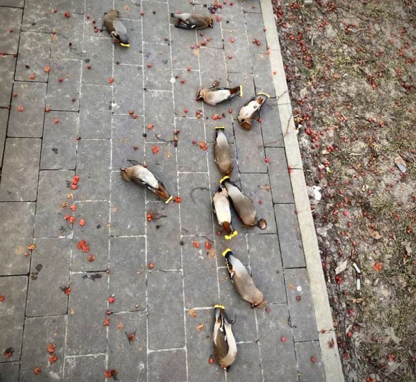 Completely irresponsible waxwing birds ðŠðŠðŠ tend to eat fermented fruit and then lie drunk on the sidewalks.Wise passers-by collect them and put them in a safe place until they sober up. https://t.co/jff6nuv2nw