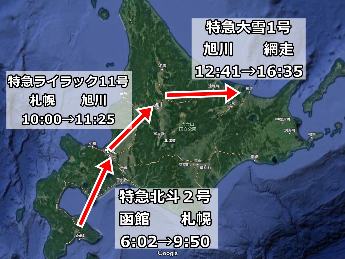 これ凄くどうでも良い移動方法なんだけど 北海道で函館から女満別まで行く場合は鉄道より飛行機で羽田経由した方が早く着きます https://t.co/uvY5w7ESZL