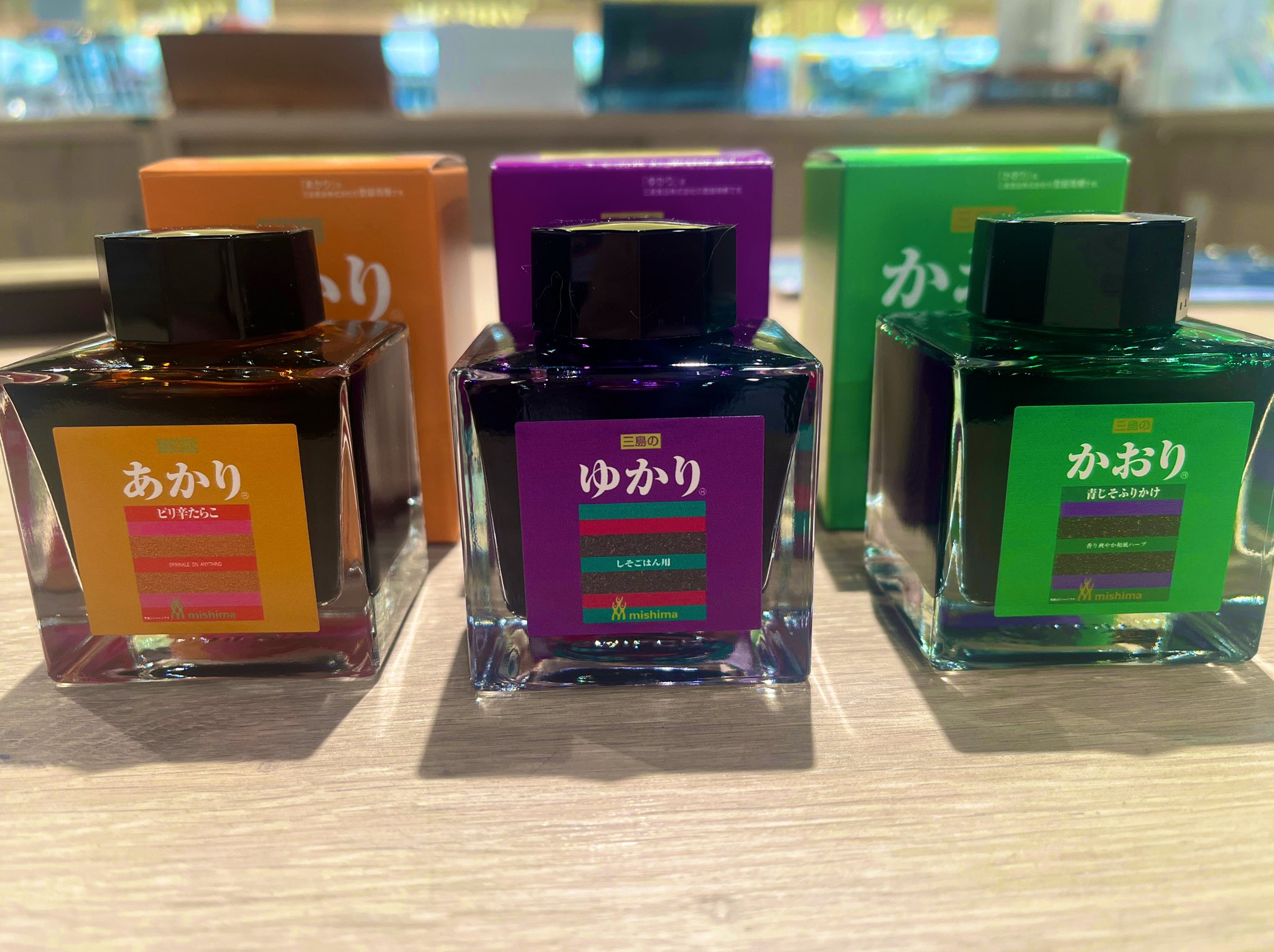 あの、有名なふりかけが、万年筆インクになりました〜!!✨…すみません、、中の人はゆかりしか存じ上げておりませんでした…#ゆかり #あかり #かおり https://t.co/Wbcx4GbTeF