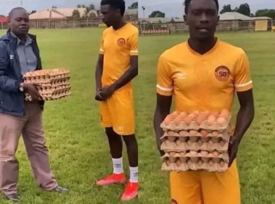 Kennedy Musonda選手ザンビアリーグの最優秀選手に選ばれ、賞品としてなんと卵5パックをゲット! https://t.co/sFGC2Wqqhk