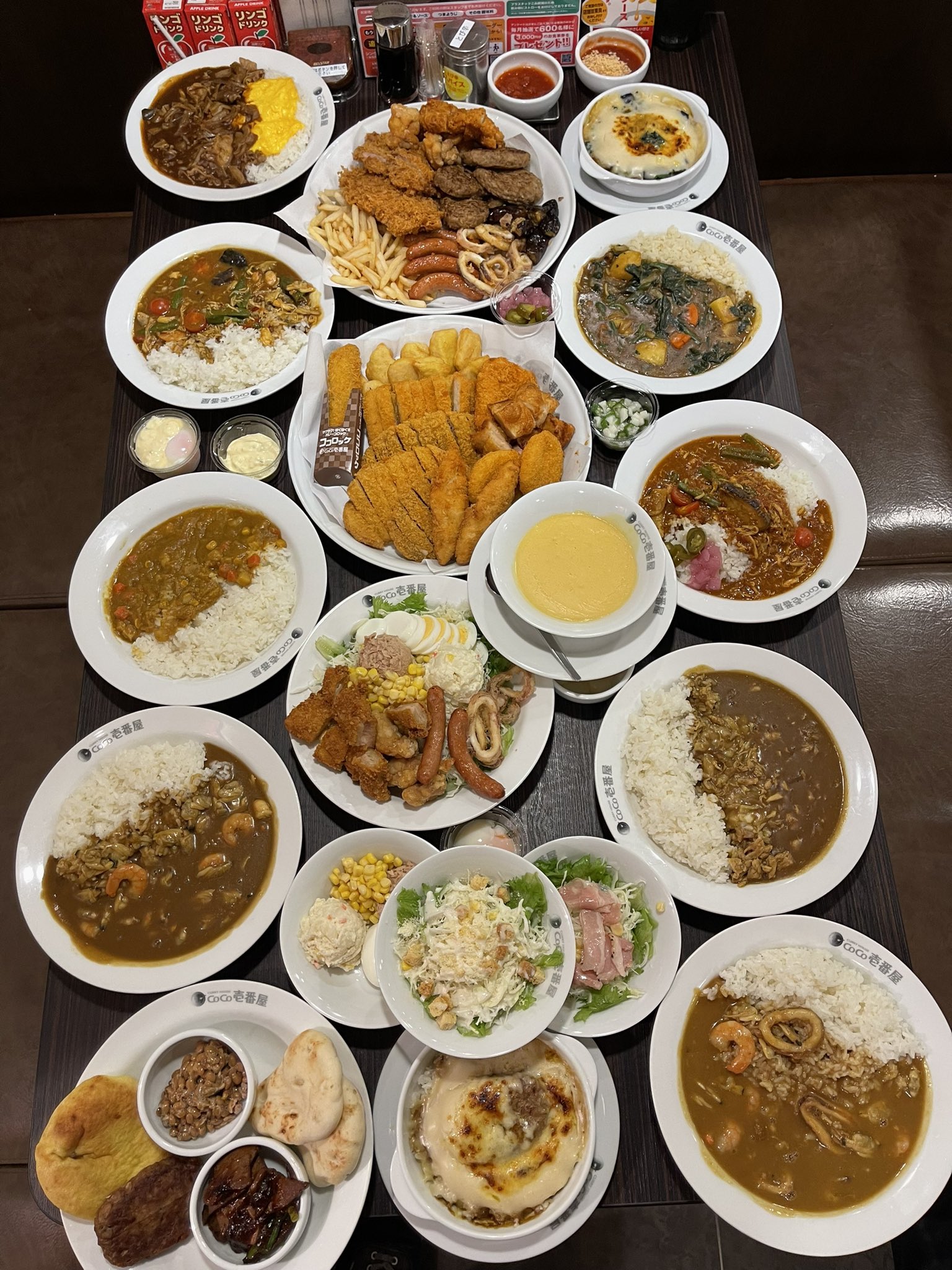 @IaPranet サイドメニューや全種類のカレーも注文すると更に圧巻になりますよ😊ちなみに5名で2時間かけて完食しました。(25000円ほどかかりました) https://t.co/Nh04X7Ff6X