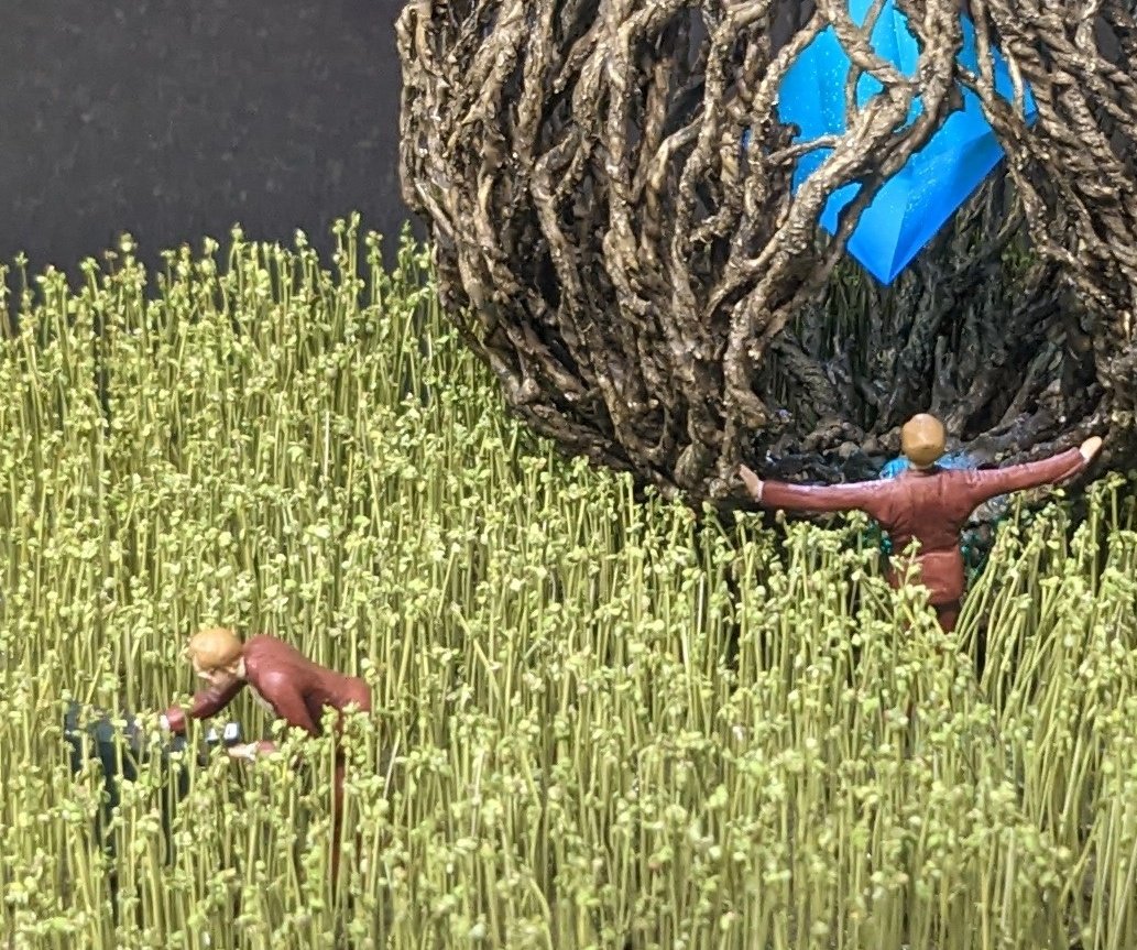 @TOmaTO89048206 フォロワー外から失礼します。細かい作り込みとキャラクターの大きさがまさに『画面から飛び出してきた』という感じで感動してコメントをさせていただきました。かがんだ姿勢のムスカは飛行石に関することがラピュタ語の石碑?を見つけているところでしょうか。圧巻のスケールです!