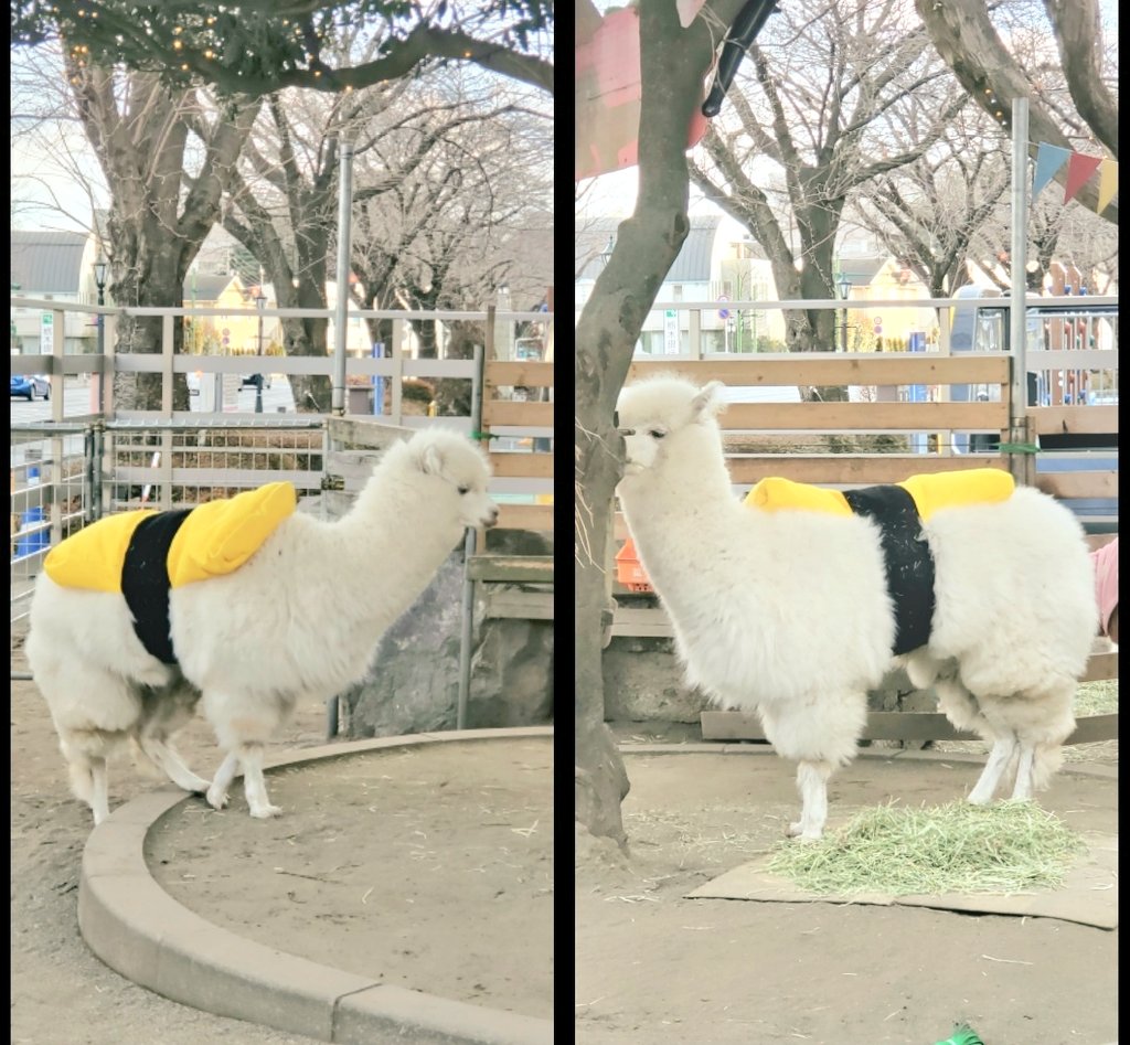 モールのアルパカ、防寒なのか玉子寿司みたいになってたが https://t.co/25ARoDSNYU