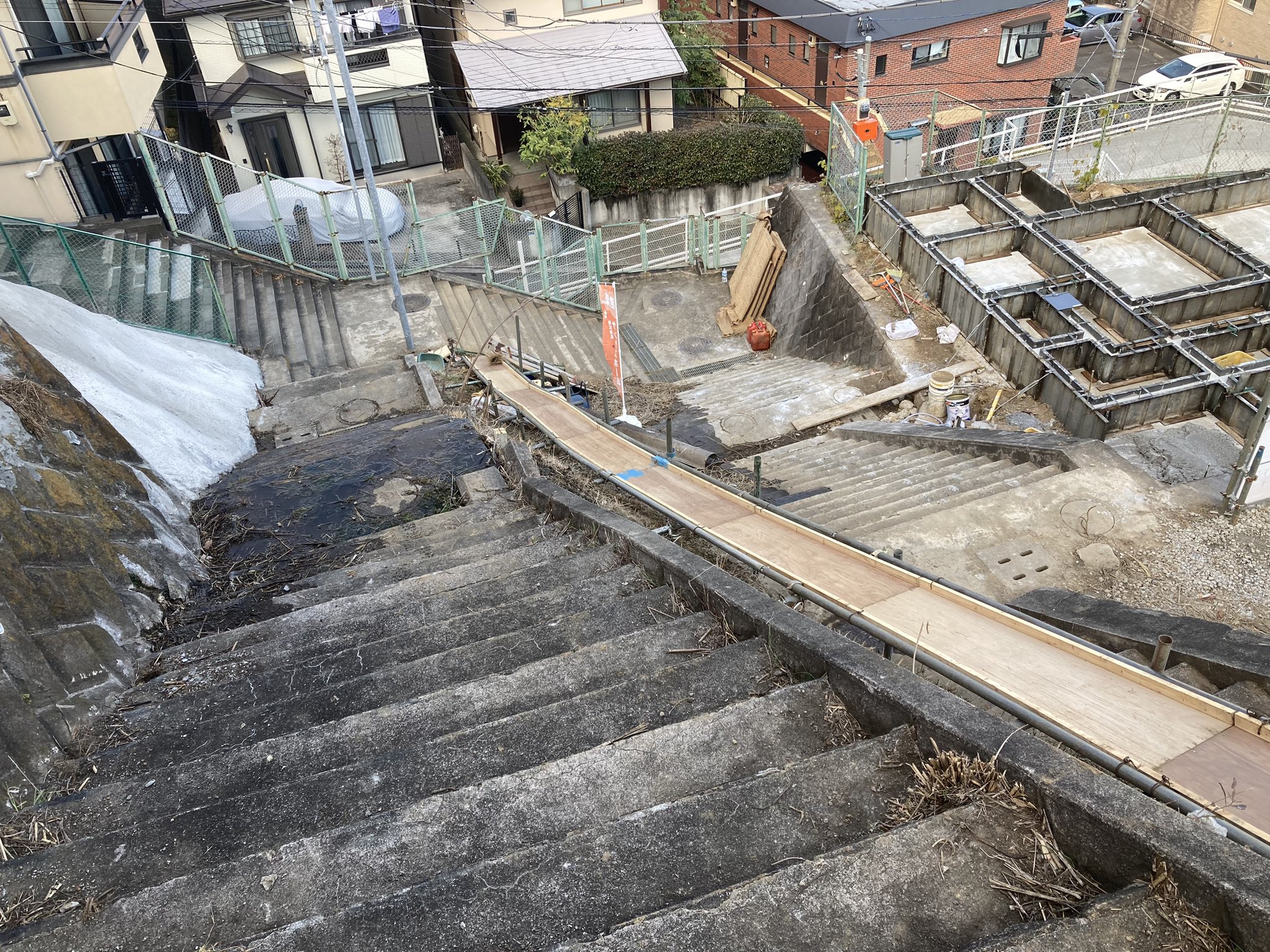 横の宅地がちょうど工事中で、この木の滑り台を利用して資材を運んでいるっぽかった。 https://t.co/RN9uky7n9i