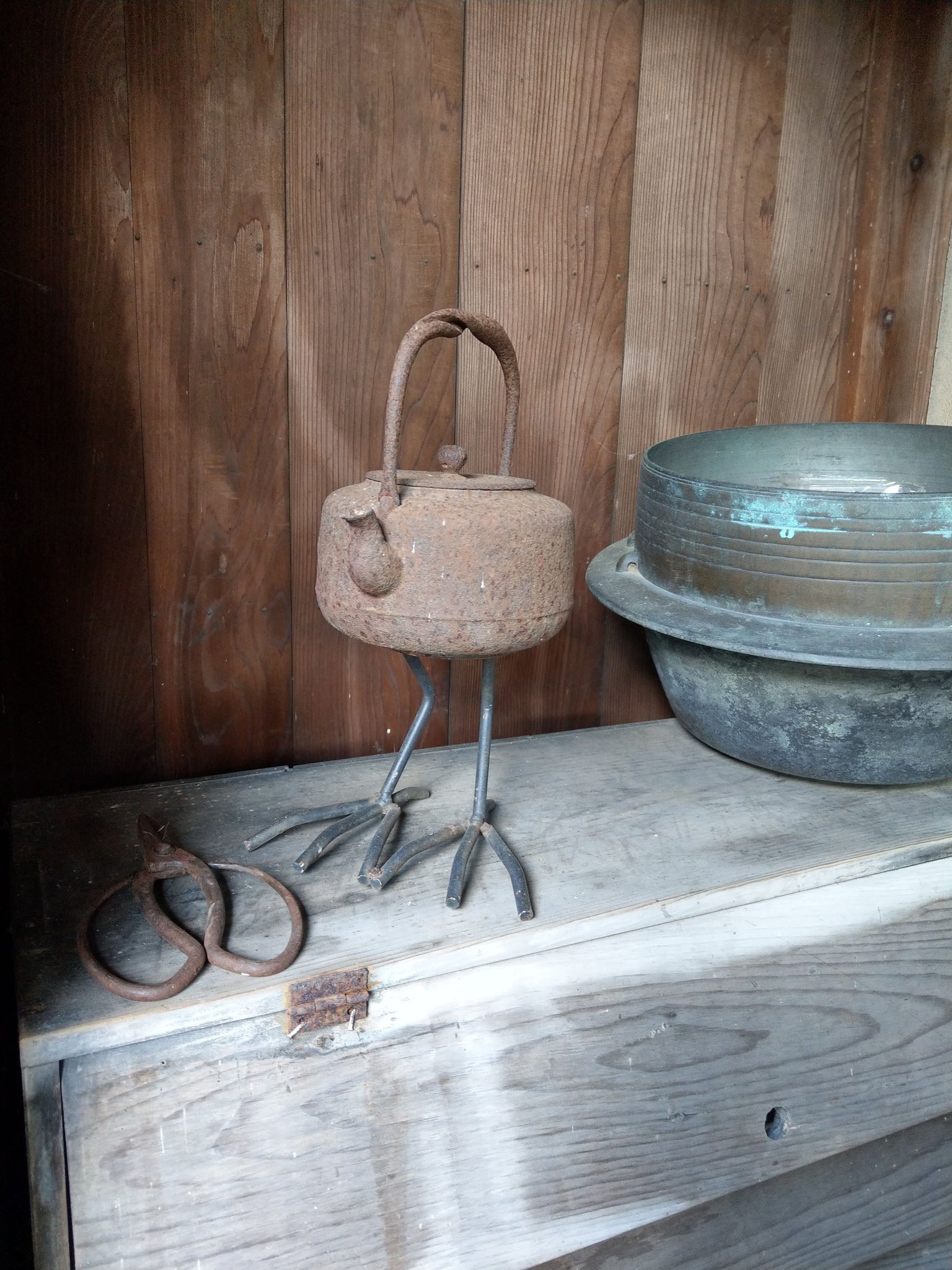@monochromeomi 欲しい〜!こんな遊びのある作りは昭和の銘品❣️緑青がついた釜も渋い❣️絵になるわ〜。