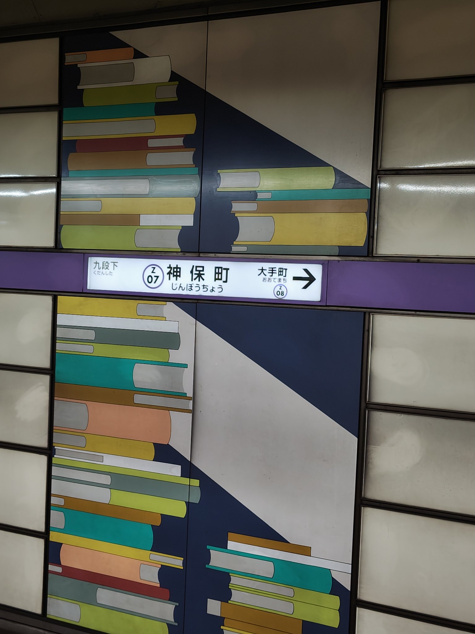 神保町駅の壁のタイル模様が「実に神保町らしい」と話題にwwww