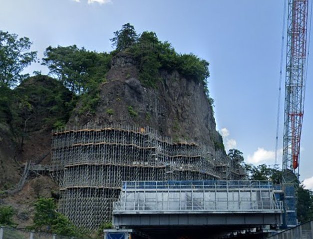 上信越道の上に巨大な足場の山が出来ていた。これは圧巻! https://t.co/QzFa7wU21G