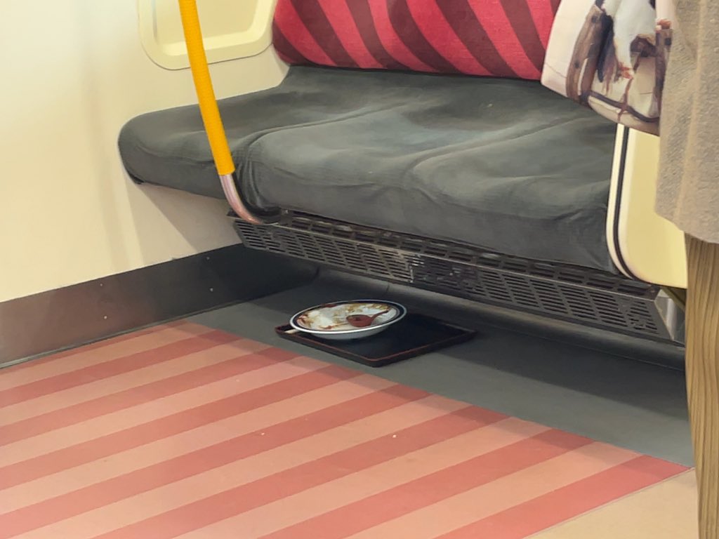 @qlduzMcwVkERMQo 失礼します。中央快速線、中央・総武緩行線、武蔵野線では不思議な方をよく見かけますがカレーライスをおいてあるのは見たことないですね…。