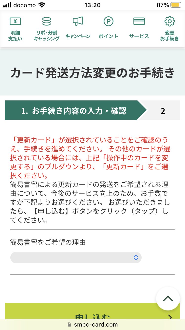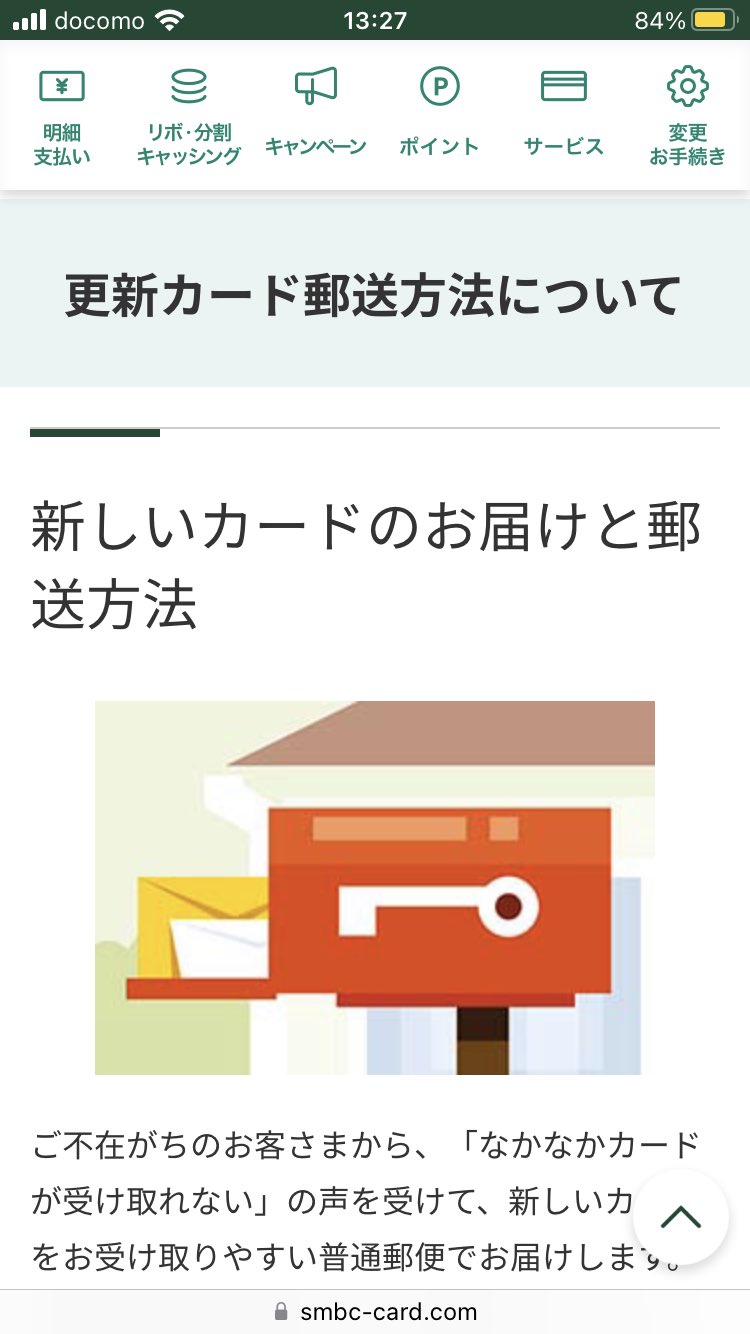@FROGGYER_KUN 三井住友カードの場合、Vpassからログインして検索サイトより『更新カード郵送方法について』を打ち込んで、そこをクリックして、下にスクロールすると途中『カード発送方法変更のお手続き』があります。簡易書留のご希望の理由を選んで、申し込めば、簡易書留に戻せますよ🐈 https://t.co/IeeSg2Dyqj