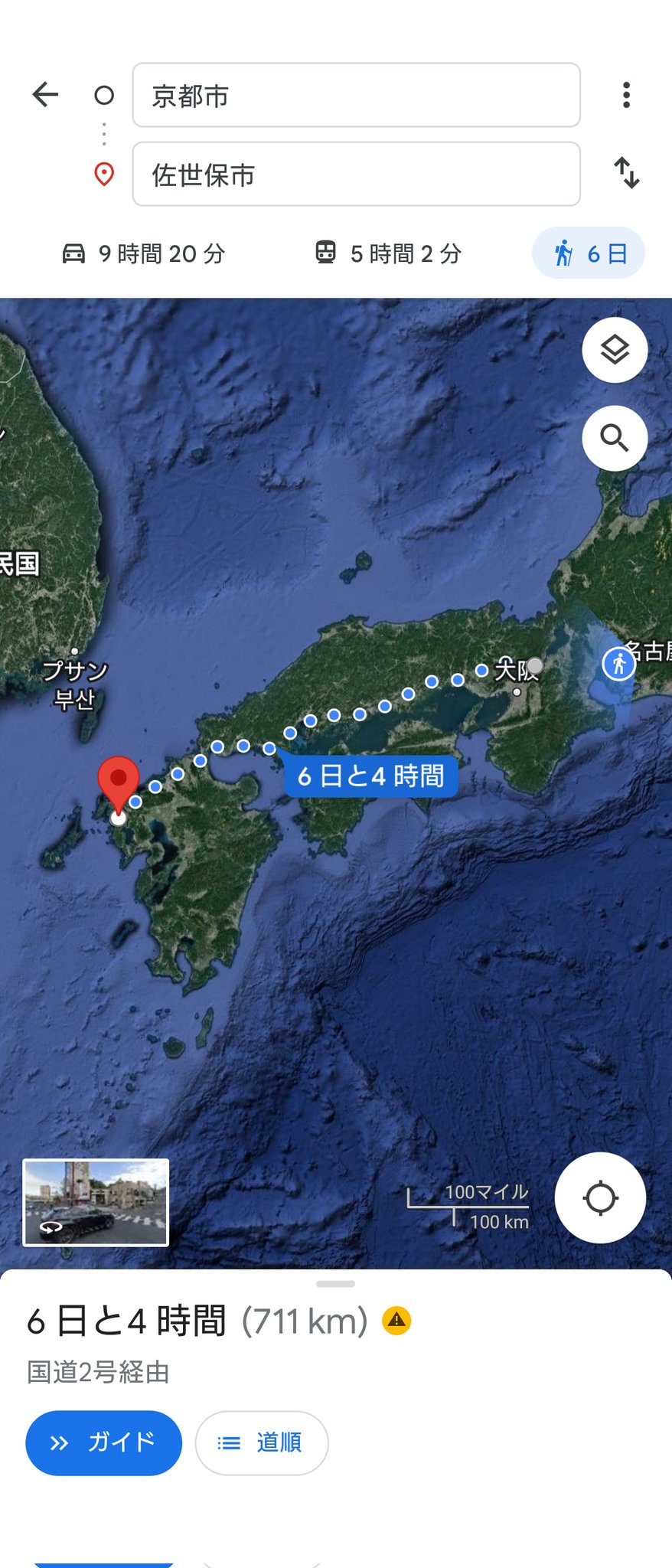 @soun142857 @461_koichi ググるマップだと6日で計算されていますが、眠らず歩き続け、食事やなんやも全て歩きながらという拷問のような前提条件ですな😇 https://t.co/E5U7TOzVzz