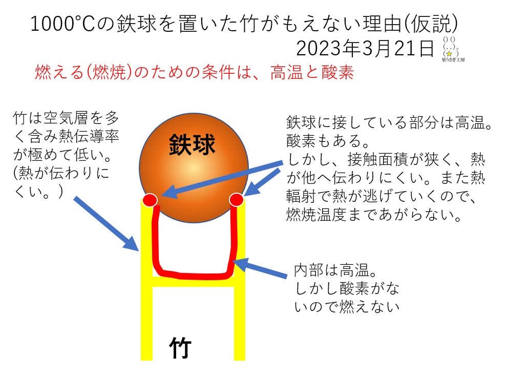 @osakasenshoku 某大学の工学部で竹の研究をしていたので、とても興味深く燃える鉄球に見入ってしまいました。
