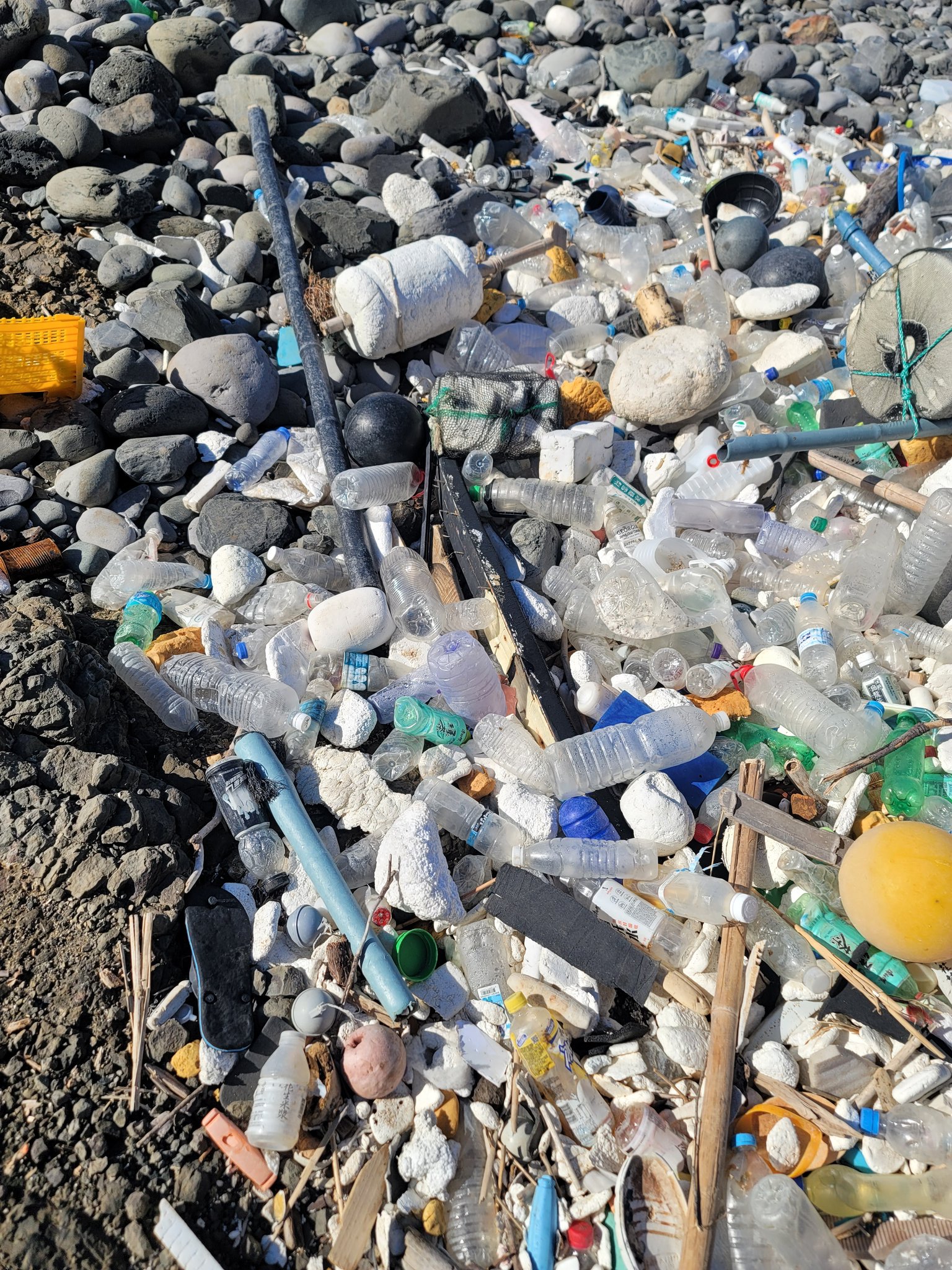 @fireroadster 石垣島の砂浜には、読めない漢字のペットボトルがたくさん漂着しています。ボランティアのみなさんがひろってもひろってもきりがないです。