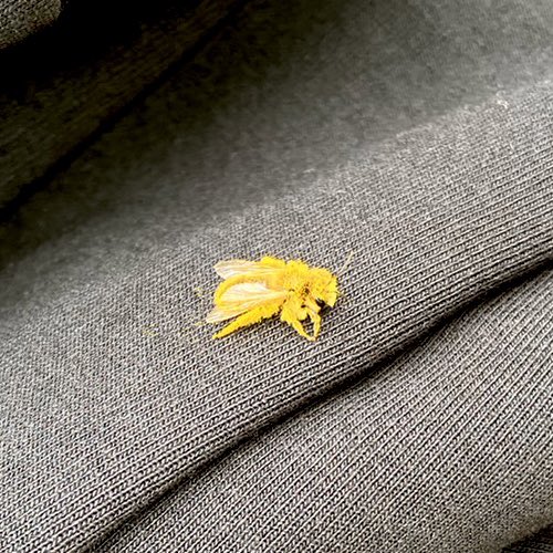 花見してたら全身花粉まみれのハチがやってきた。こんなん初めて見た🐝可愛かったけど https://t.co/ftBEJUURxL