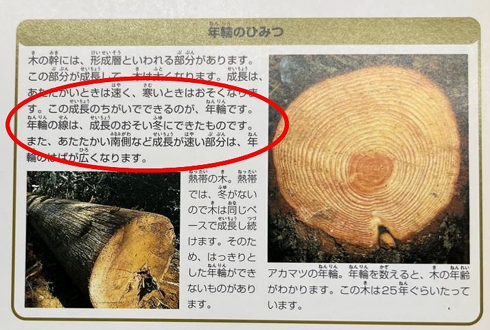 目からウロコの木のはなし(ブログ編) この切り株のどちらが南の方角でしょうか? 夏休みの自由研究ネタに
