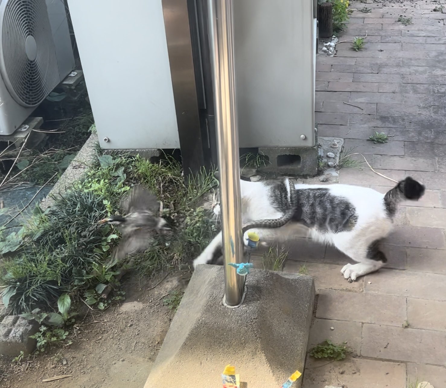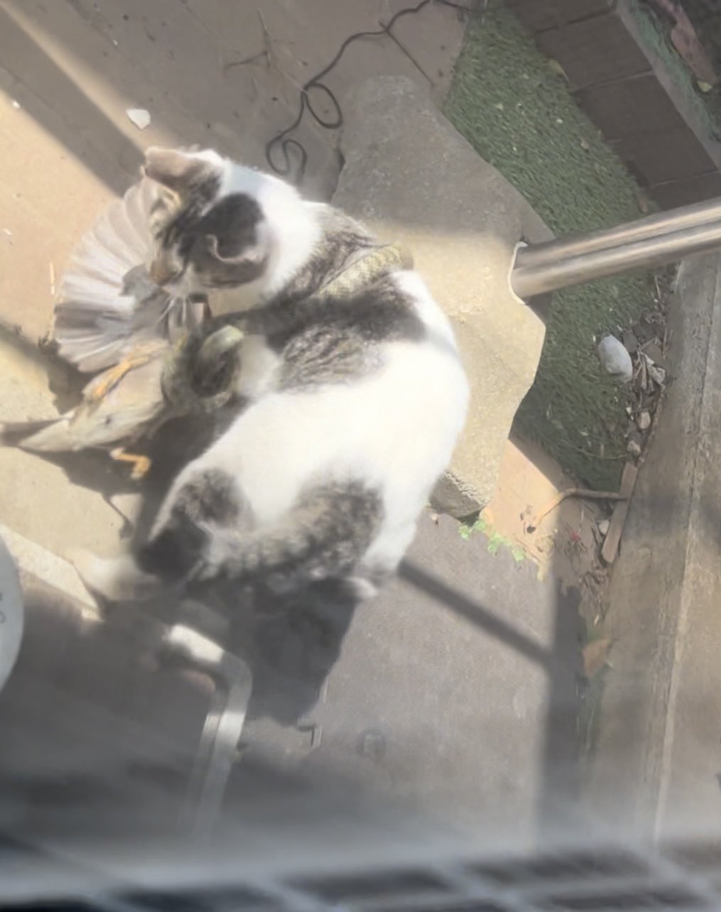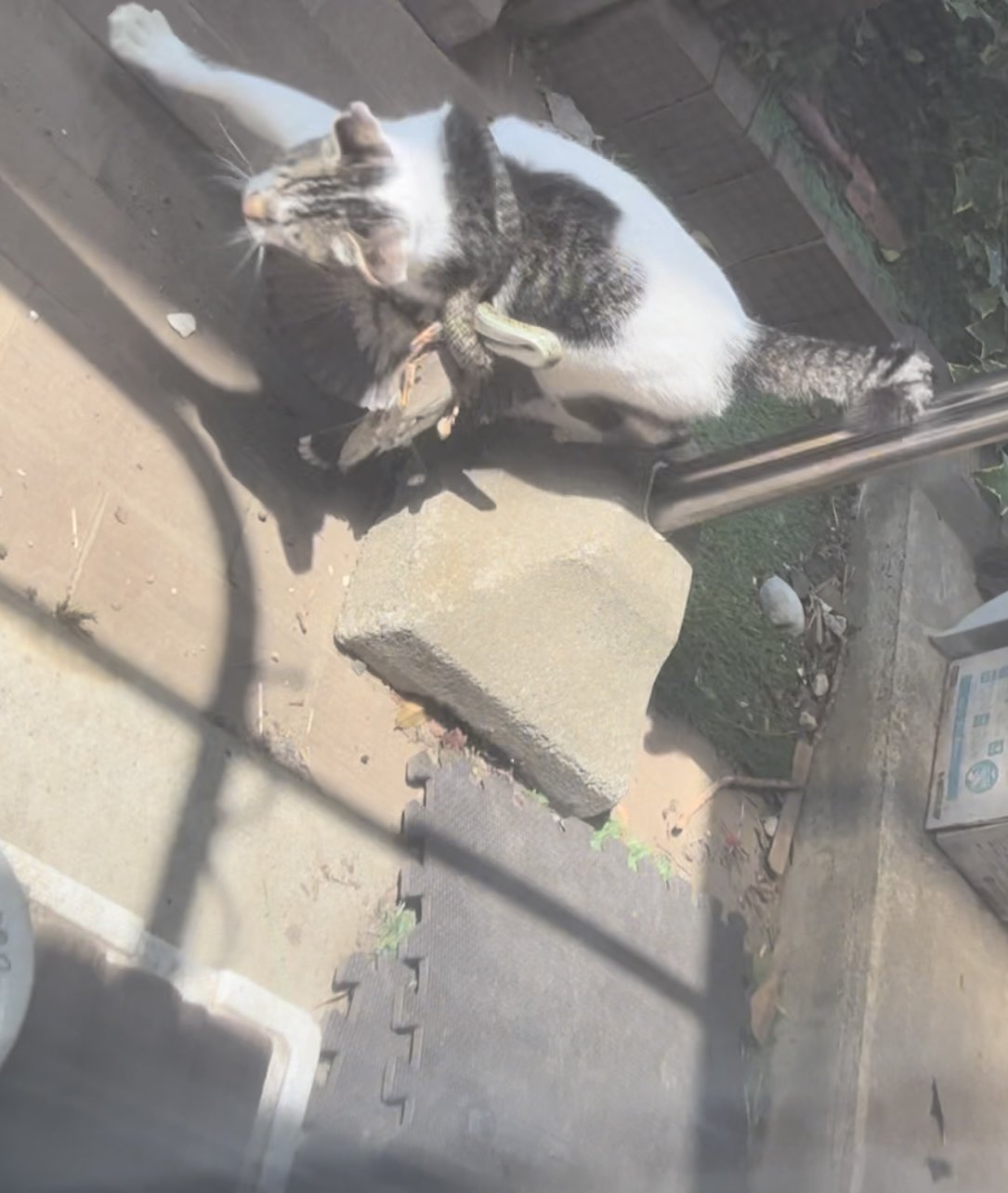 庭で野良のにゃんさんが蛇巻き付けながら鳥捕まえてた。 https://t.co/3MKLsggRKF