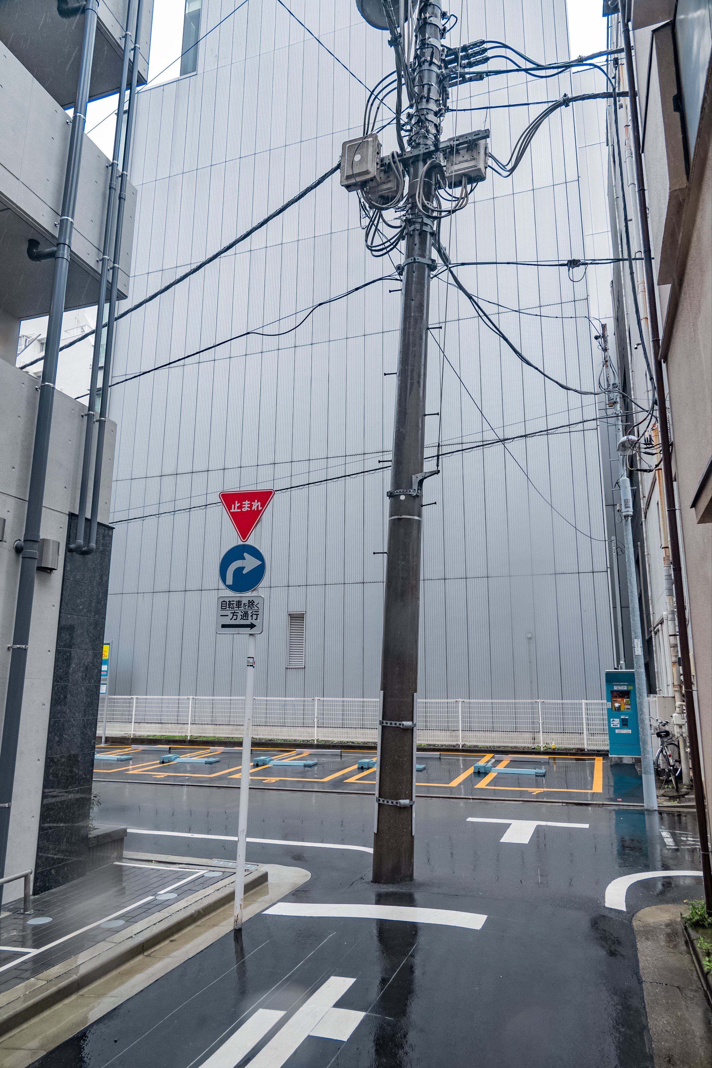 @keionoteio もともと車が通れない巾一間の里道を左側のマンション建設に伴いセットバックの上舗装した結果でしょうか。電柱移設する金はなかったのか…🤔