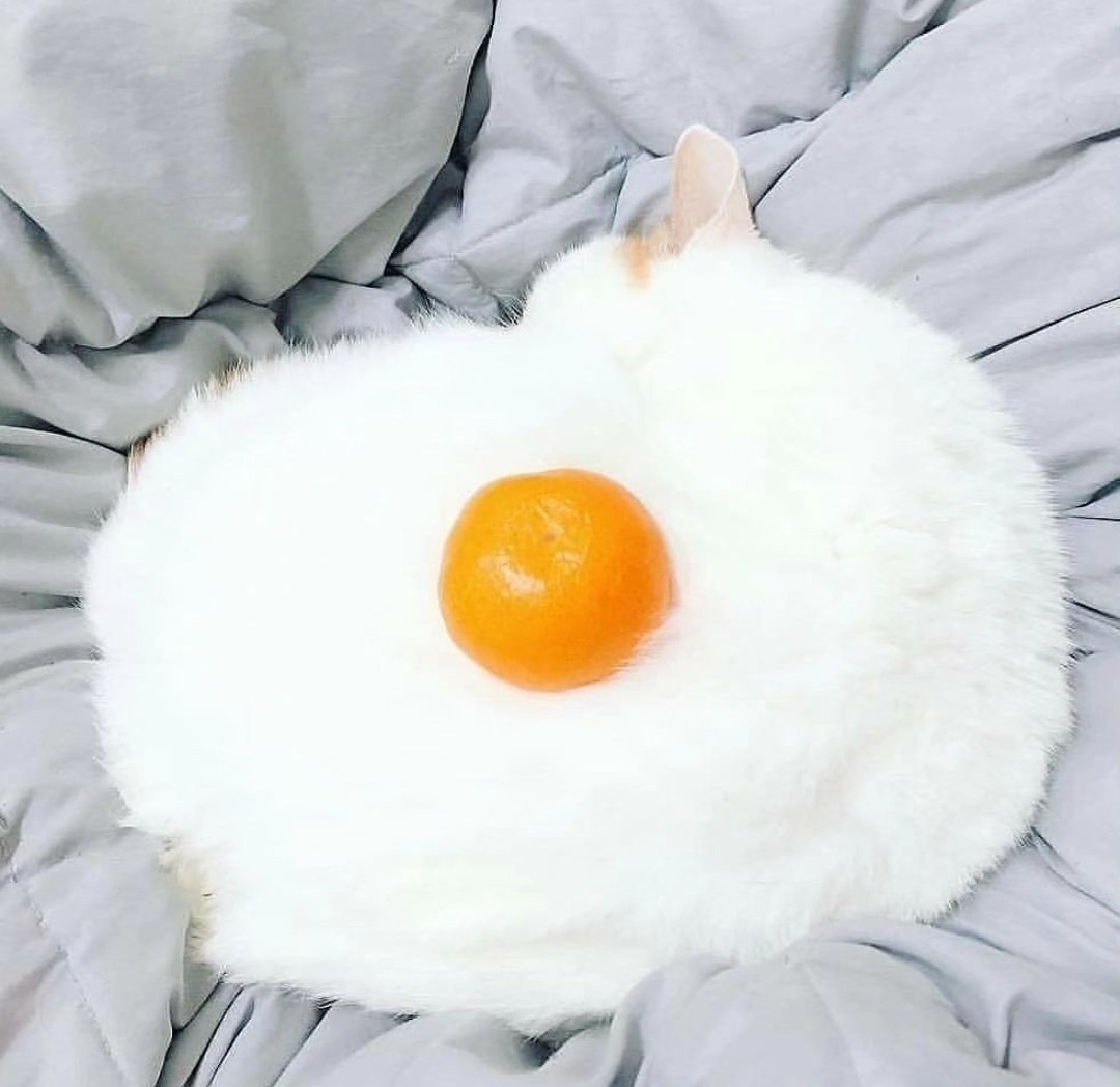 まんまる白ネコちゃんにみかんを真ん中に載せたら目玉焼きなった😸 https://t.co/FbhjO2MUdQ