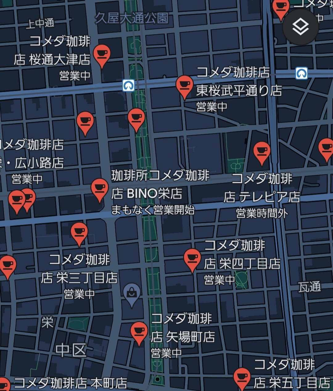 東京の人は知らないかもしれませんが、名古屋にはコメダ珈琲、このくらいあるんですよ https://t.co/gNLtajoilT