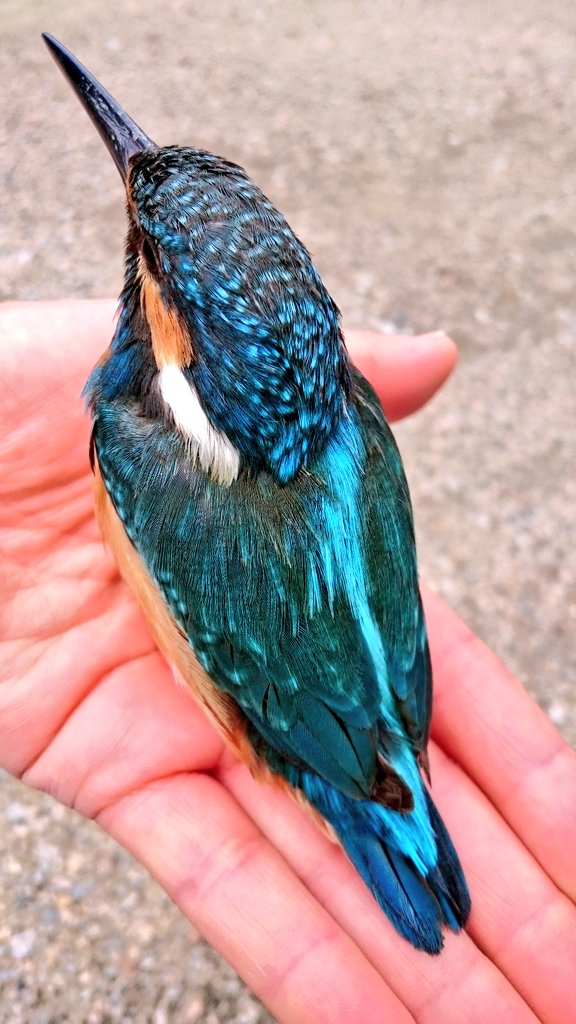 カワセミを掌に乗せたことがある(曇天の日に サッシに衝突して そのまま 庭に落ちていたので 生存確認している うちに目覚めて飛び立っていった )#他の人が持っていないような写真を晒せ https://t.co/ZoHx8cTplS