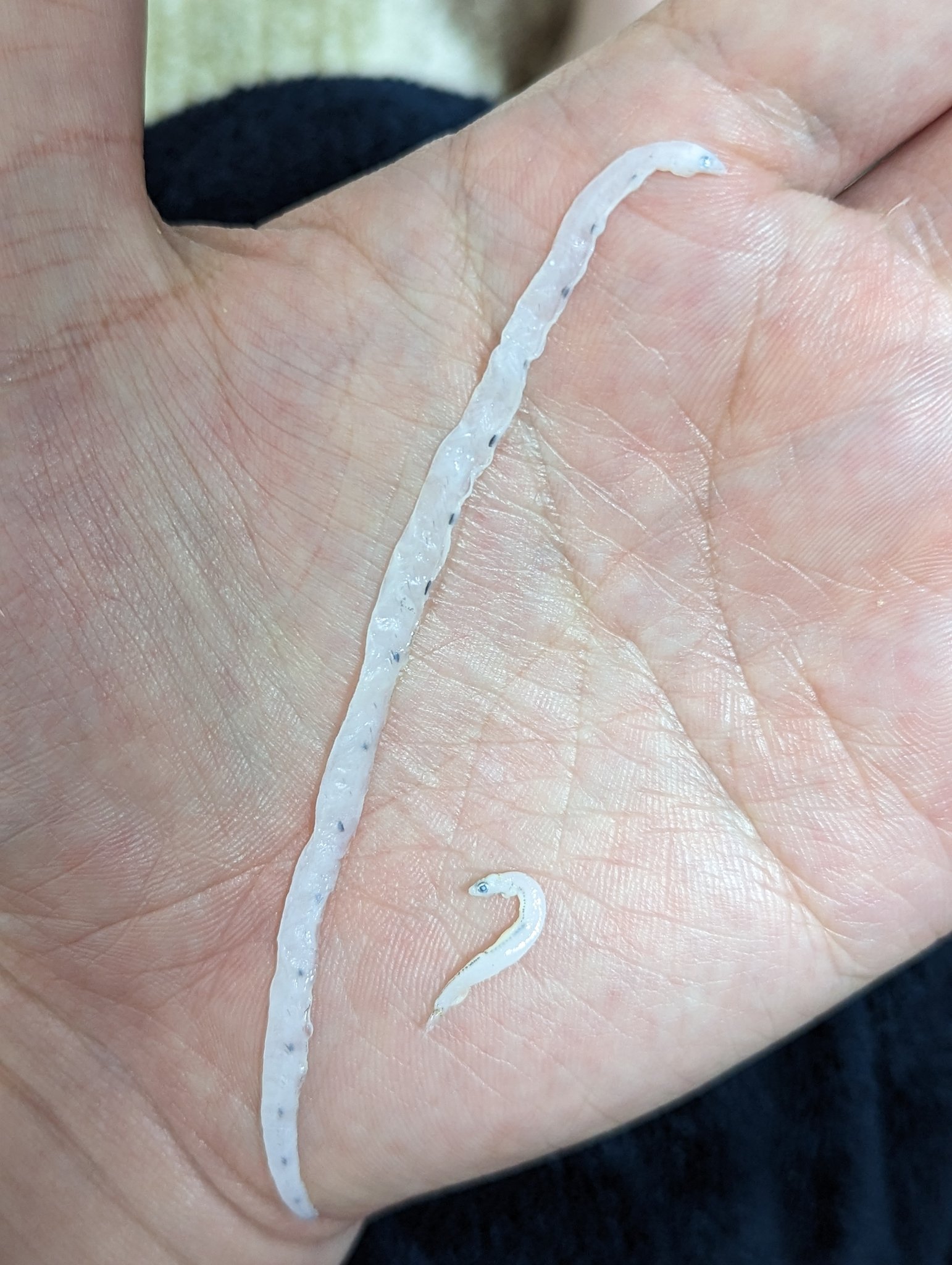 釜揚げしらすの中に紛れてた、タチウオの稚魚#他の人が持っていないような写真を晒せ https://t.co/50WqAw0LOW