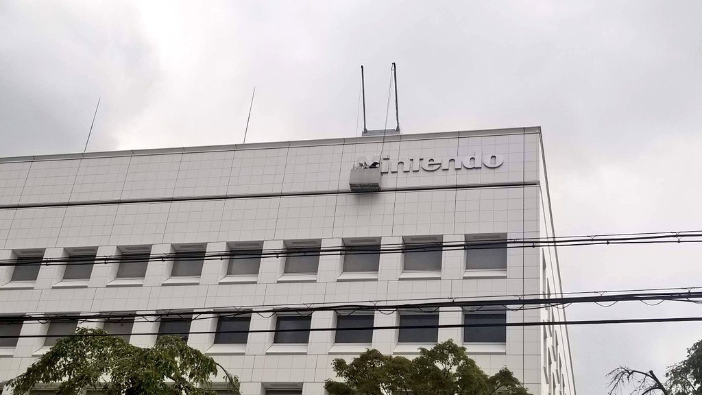 #他の人が持っていないような写真を晒せ台風でNintendoの「N」が吹っ飛んでしまったので補強工事している時の任天堂本社 https://t.co/imm1WrBOM6